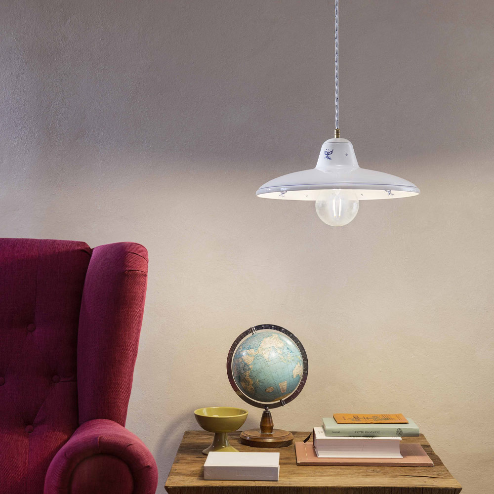 Hånddekoreret pendel i jern og keramik, lavet i Italien af Ferroluce.