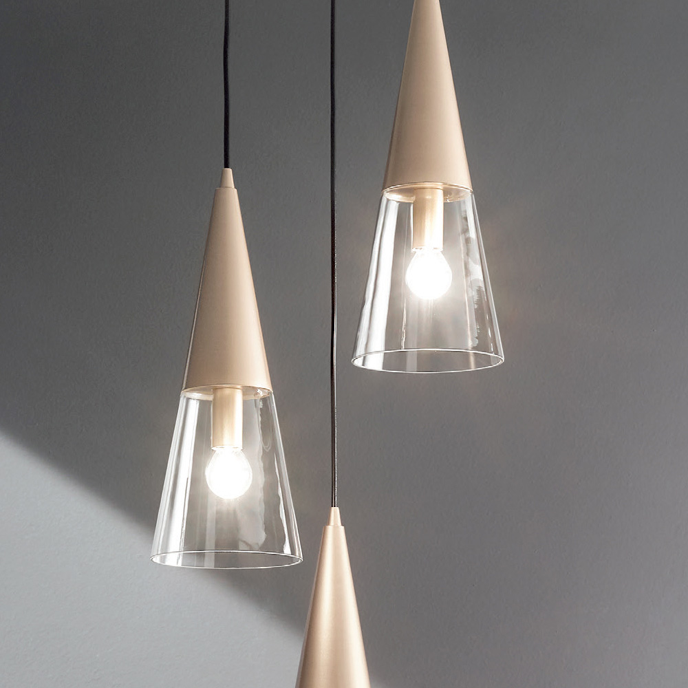 moderne og avantgarde design . De vidunderlige blæste glaslampeskærme giver personlighed til lampen og understreger dens elegance. De foreslåede finish fuldender på den anden side produktets endelige æstetik, markerer dets unikke karakter og skaber en