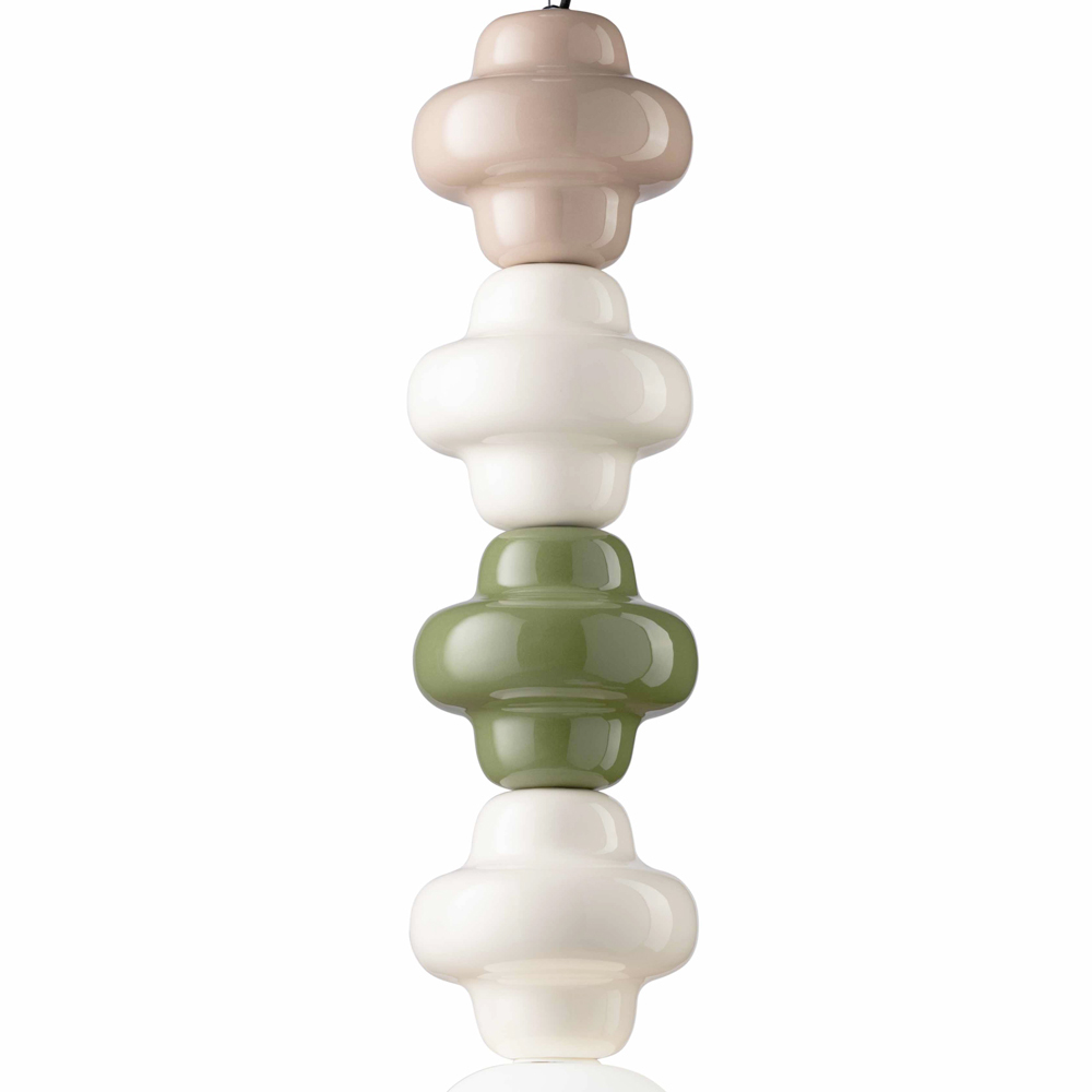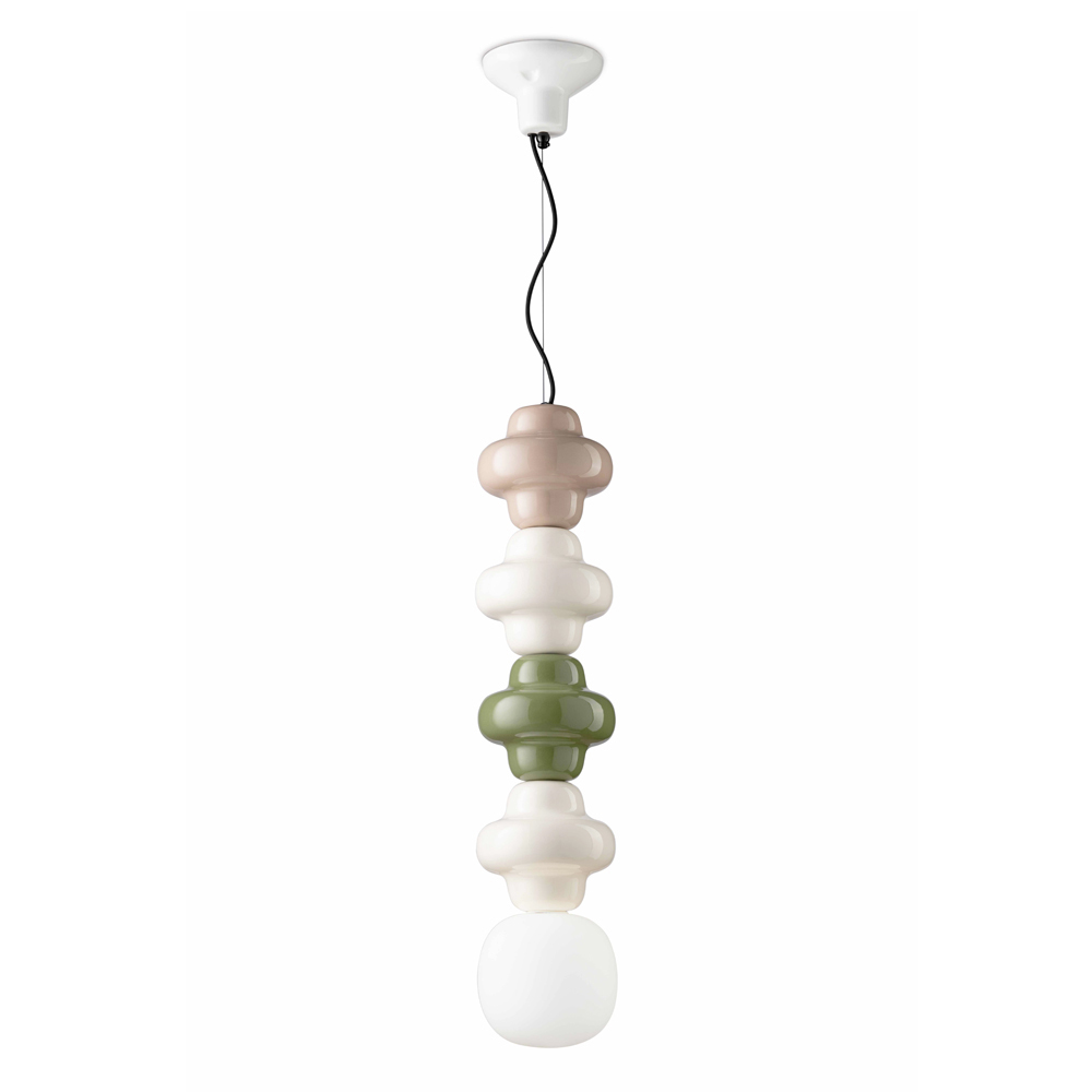 Denne elegante pendel inkarnerer et harmonisk møde mellem håndværk og moderne design . Perfekt til dem, der sætter pris på kvaliteten af Made in Italy, lampen har en skinnende keramisk base, som minder om traditionelt håndværk og tilføjer et strejf af varme. Dens design er beriget med en satin opal glas diffuser, som producerer et blødt og indbydende lys, ideelt til at skabe en behagelig og afslappende atmosfære i ethvert miljø.