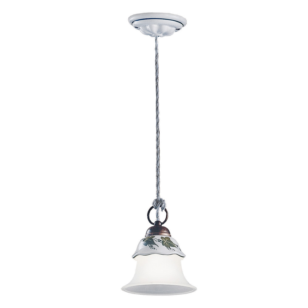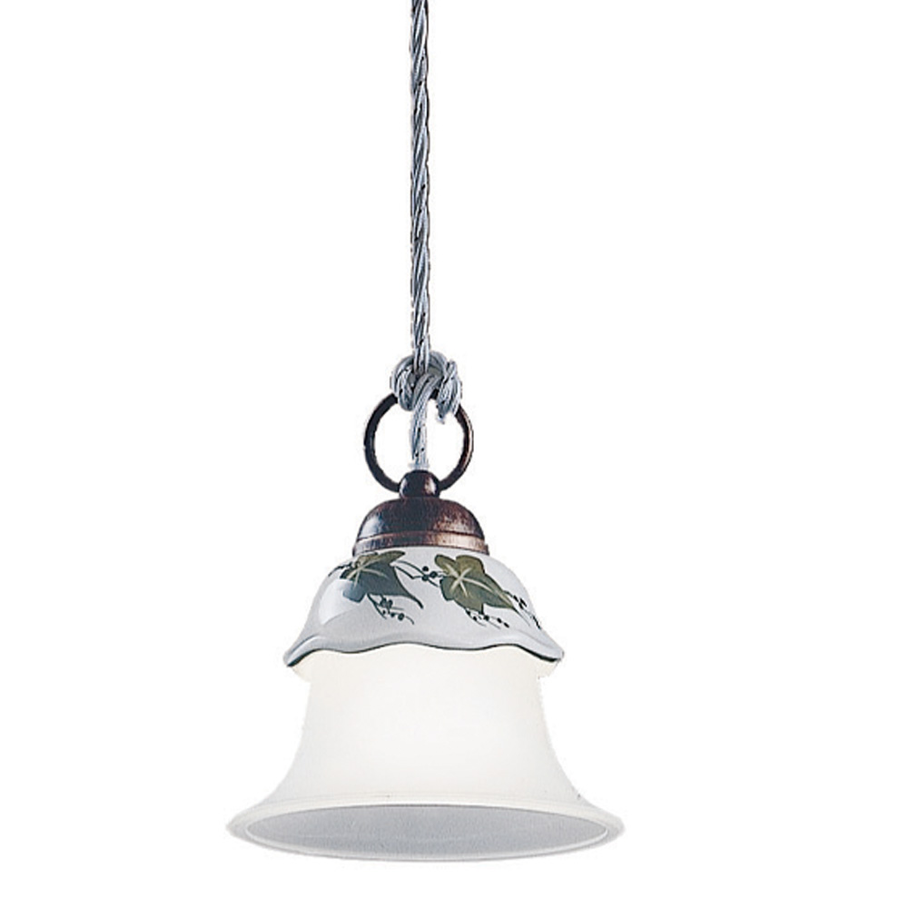 Pendellampe i jern, hånddekoreret keramik og syreætset glas fremstillet i Italien af Ferroluce.