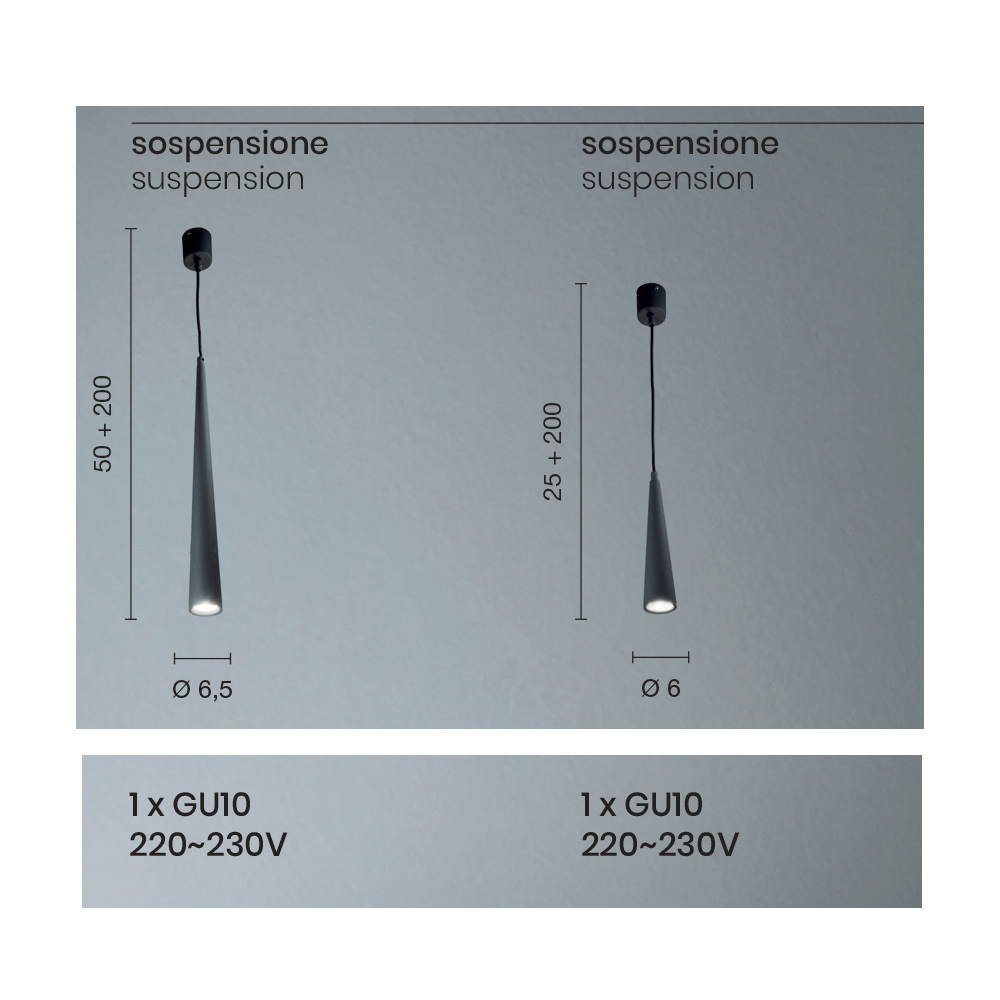 rent, enkelt og minimalt design. Tilgængelige finish: Tilgængelige størrelser:- diameter: 6,5 x H max 250 cm