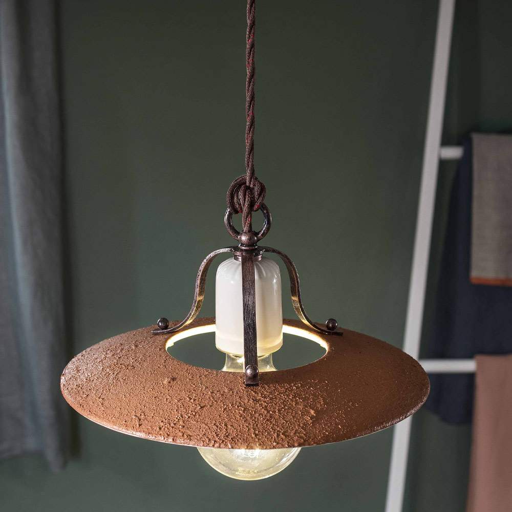 Pendellampe i jern og håndlavet ru keramik, 3 størrelser lavet i Italien af Ferroluce.