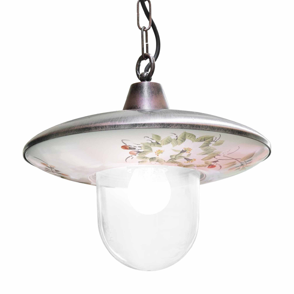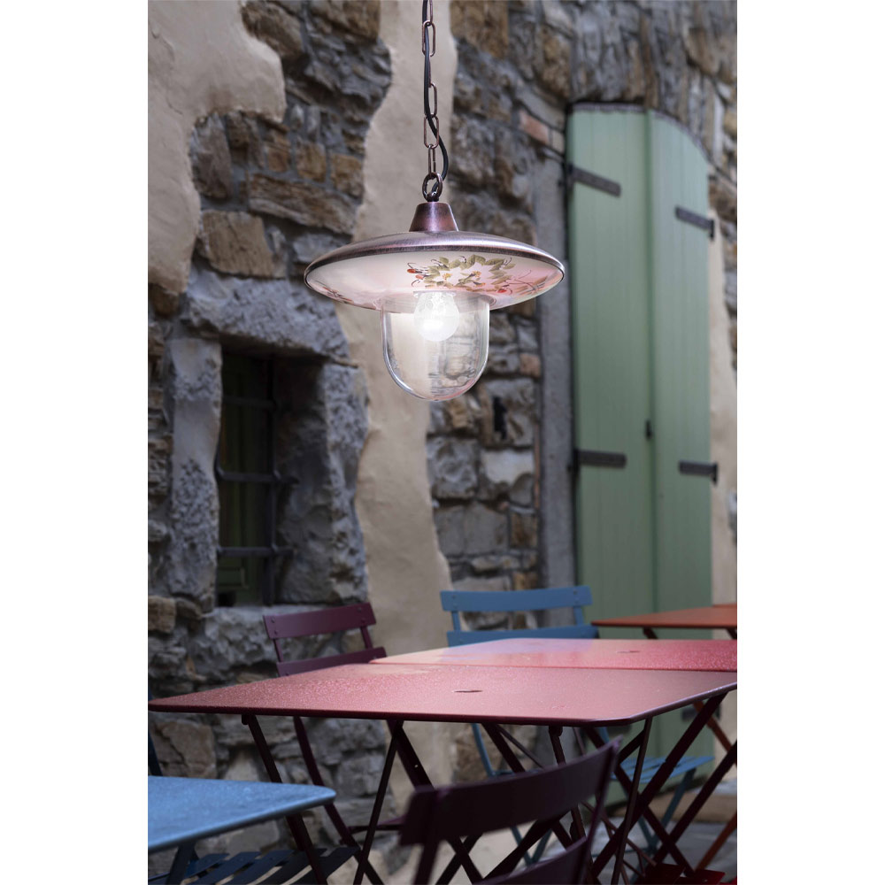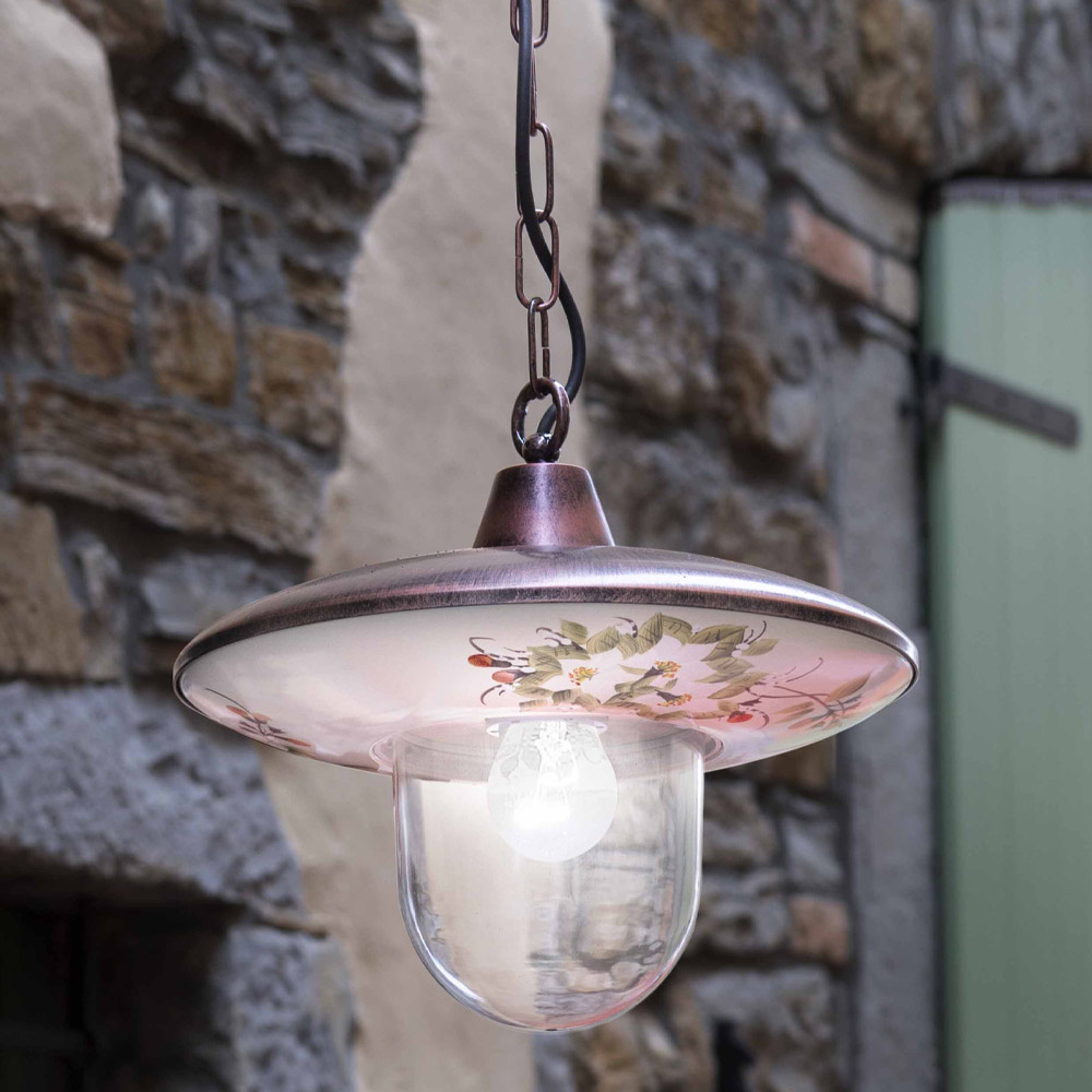 Denne pendel til udendørsrummet er udelukkende lavet af sort aluminium med kobberskærm og dekoreret med håndmalede blomster for en klassisk og harmonisk stil mellem form og farver.