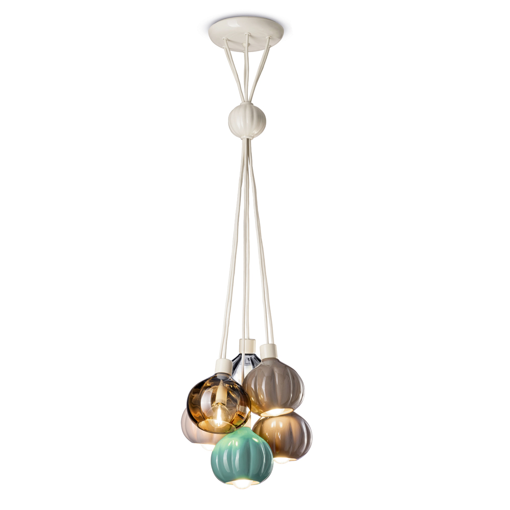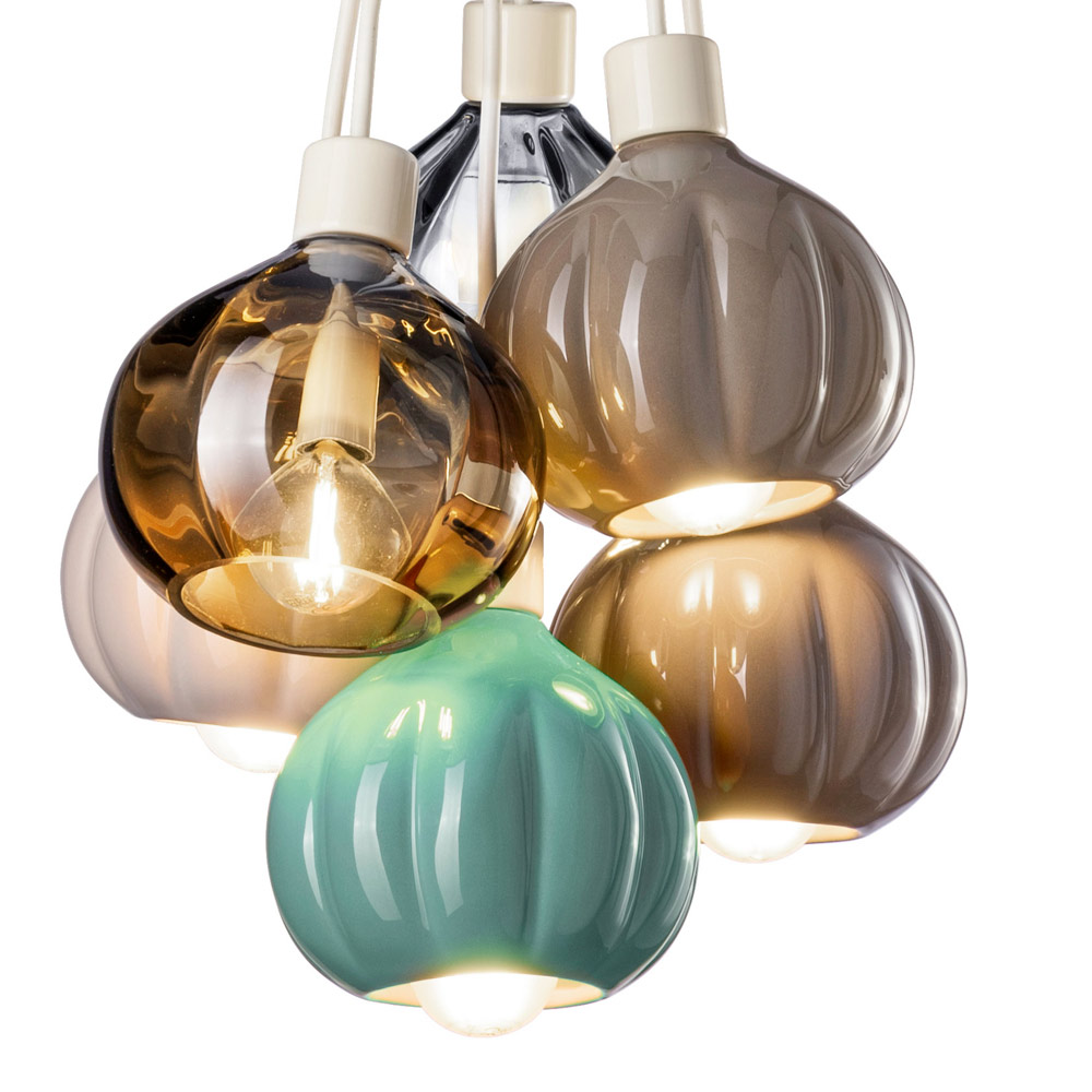 Højdespillet og variationen af farver skaber en harmonisk helhed, der bliver det visuelle omdrejningspunkt i ethvert rum , en ophængt skulptur, der oplyser og dekorerer på samme tid. Denne lampe er en ideel mulighed for de kunder, der leder efter et unikt møbel, der fortæller en historie, et objekt, der ikke bare er et lysarmatur, men et karakteristisk designelement.