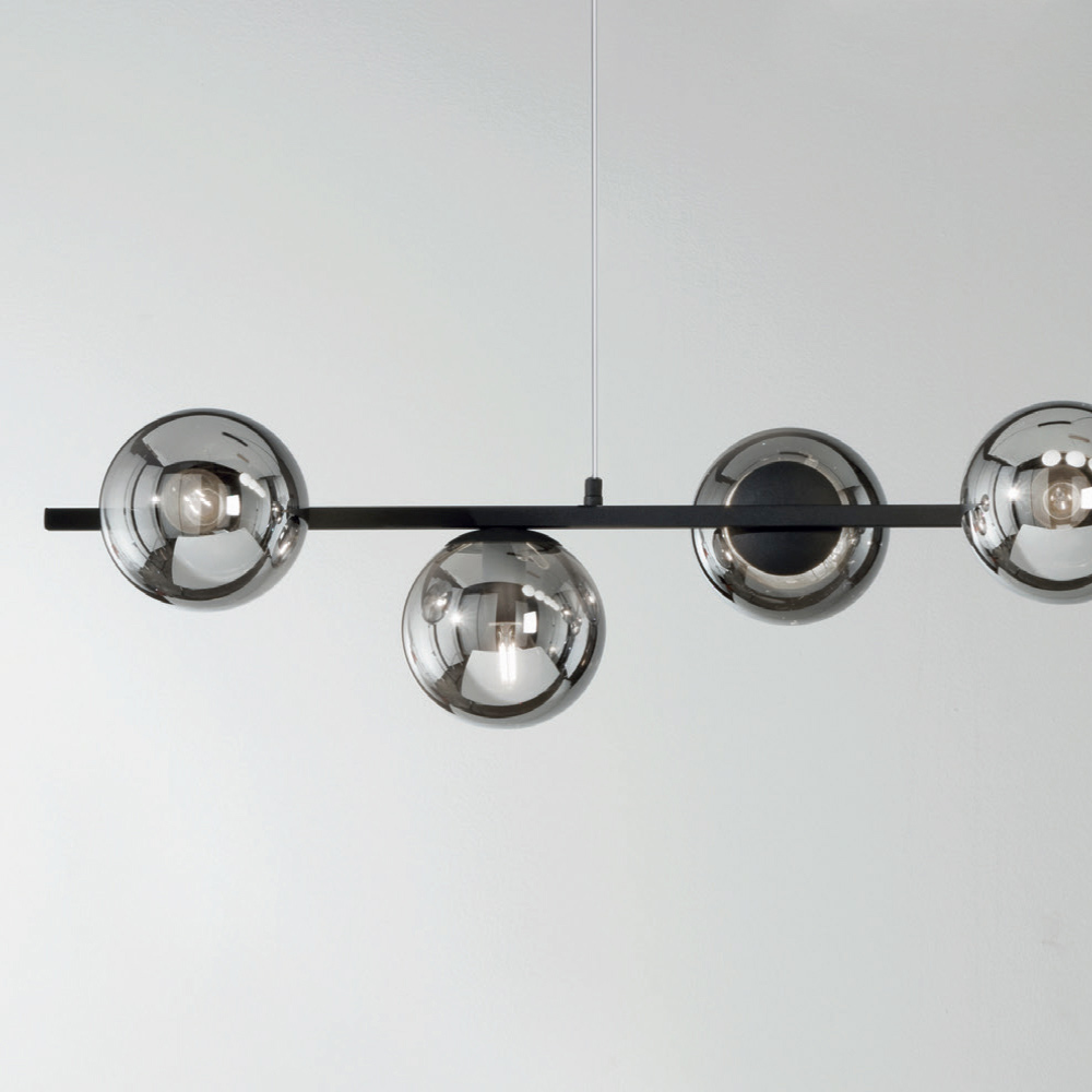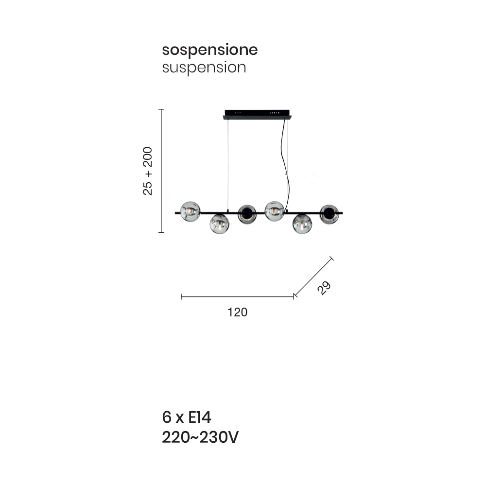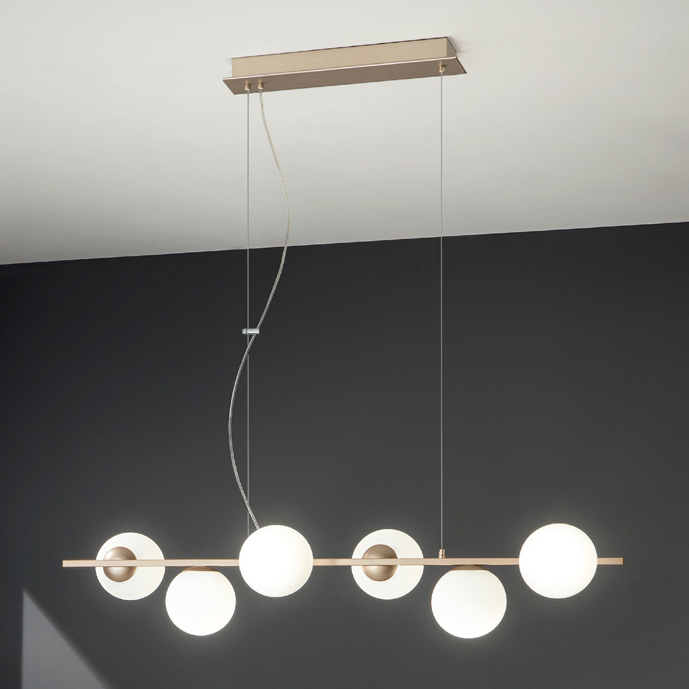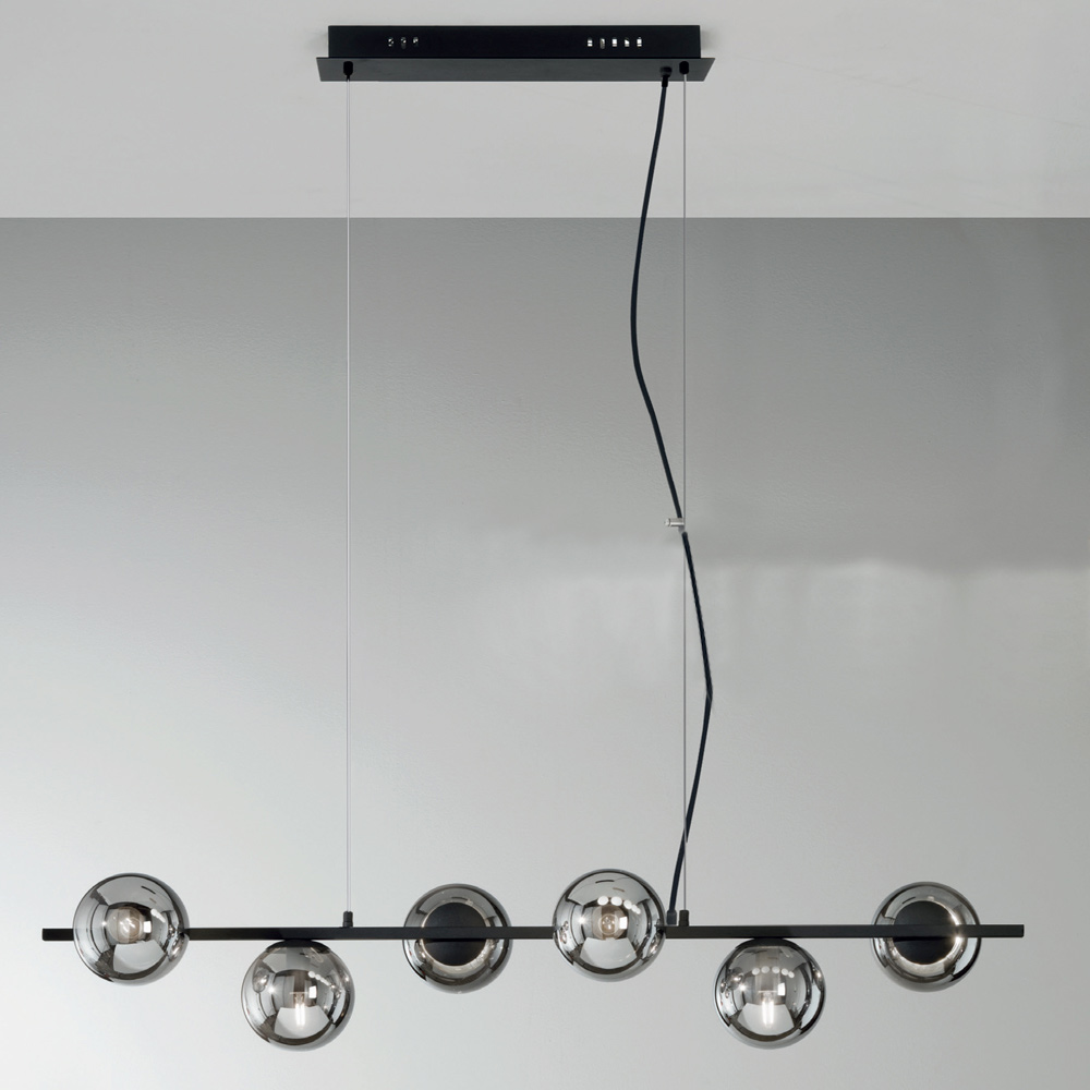 Pendellampe med 6 lys med metalstruktur og sfærisk