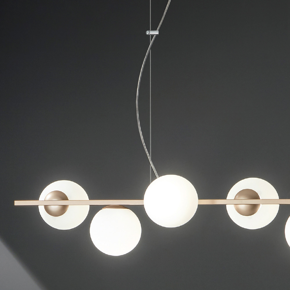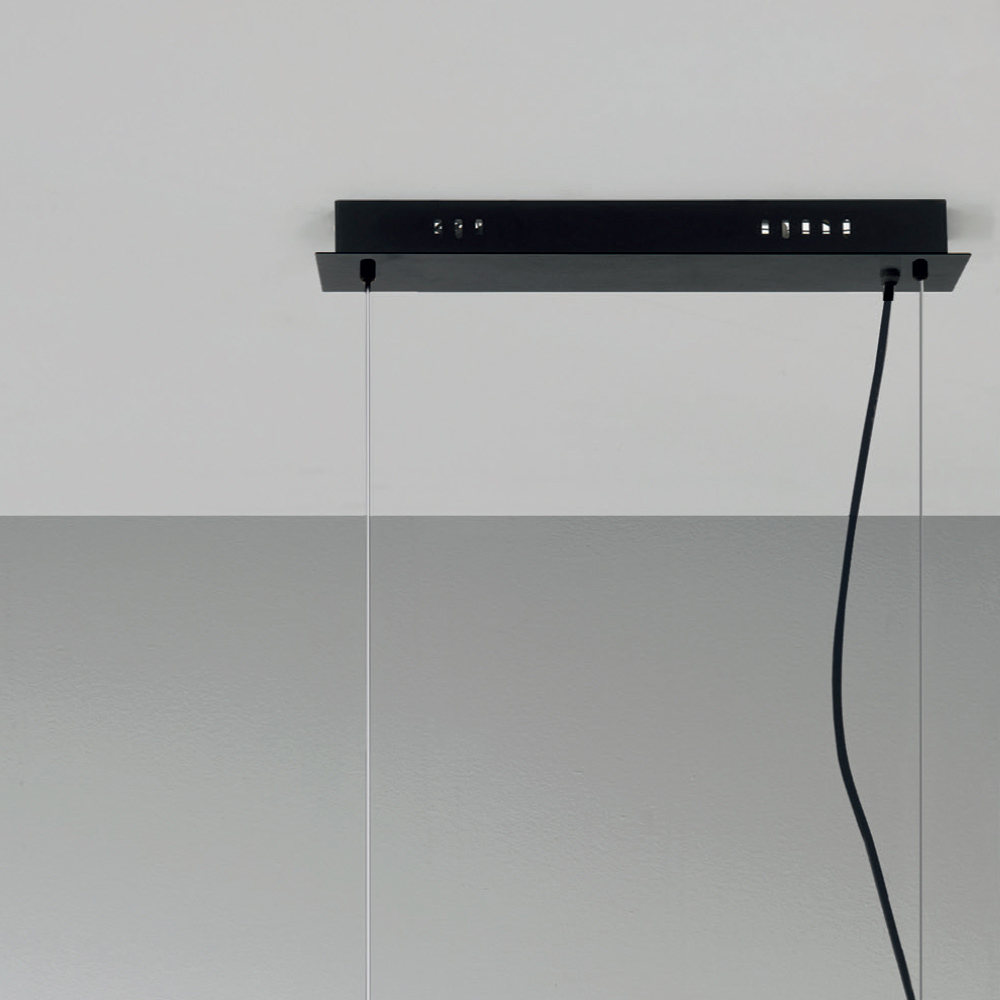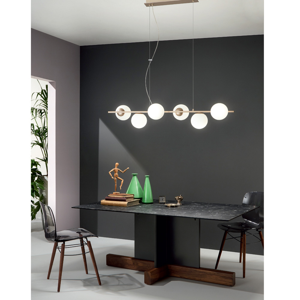 original og raffineret indretningsløsning født, der er i stand til at erobre centrum af opmærksomheden i moderne boligmiljøer. Dens struktur udvikler sig på en enkelt linje, hvilket gør den til en særdeles velegnet løsning til belysning af dit bord inde i spisestuen eller køkkenet.