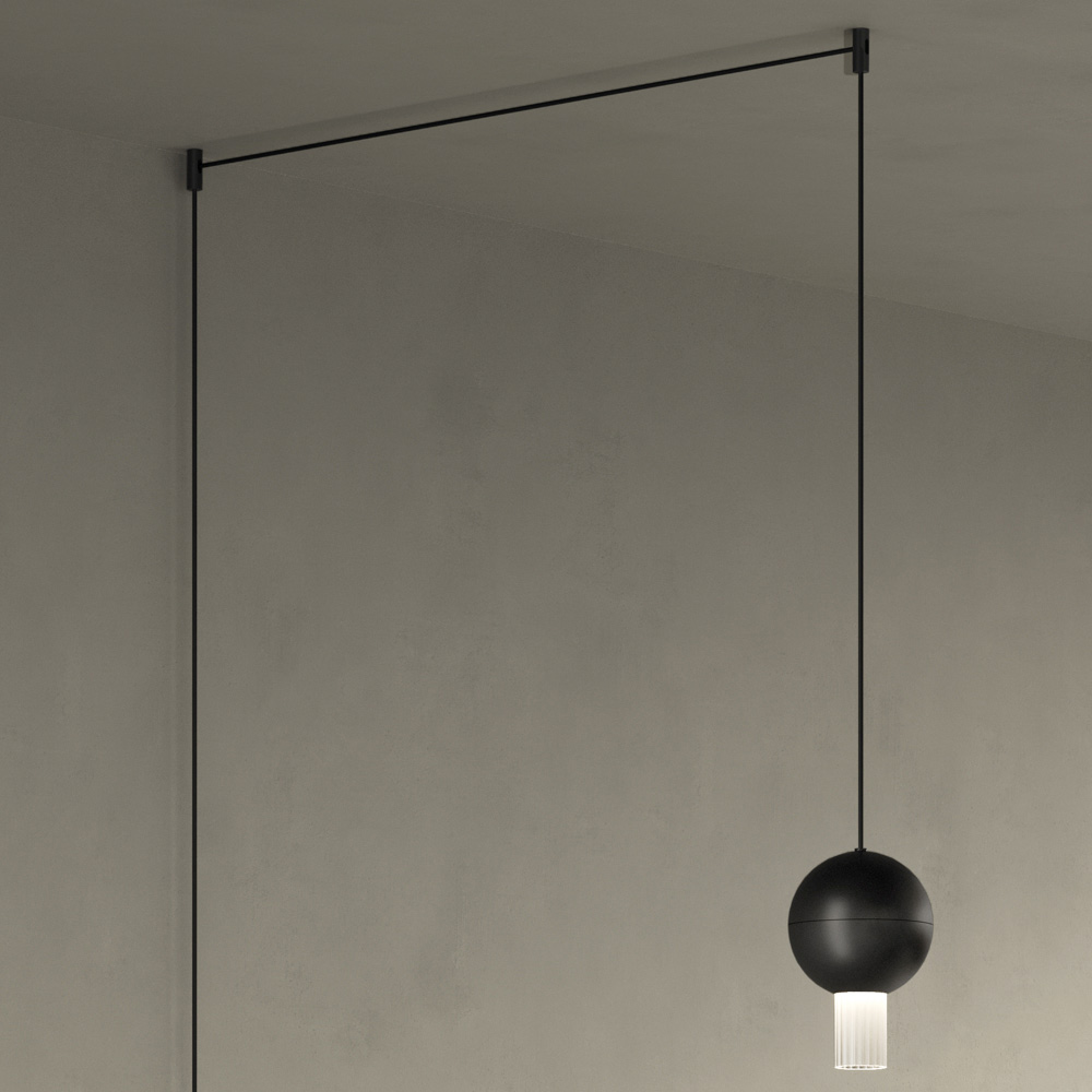 Denne pendellampe legemliggør essensen af elegant minimalisme med en kompakt og harmonisk form, der forbedrer ethvert rum med diskretion og stil . Den sfæriske lampehus matcher perfekt det nederste lyselement og skaber en raffineret kontrast mellem fyldigt og transparent .