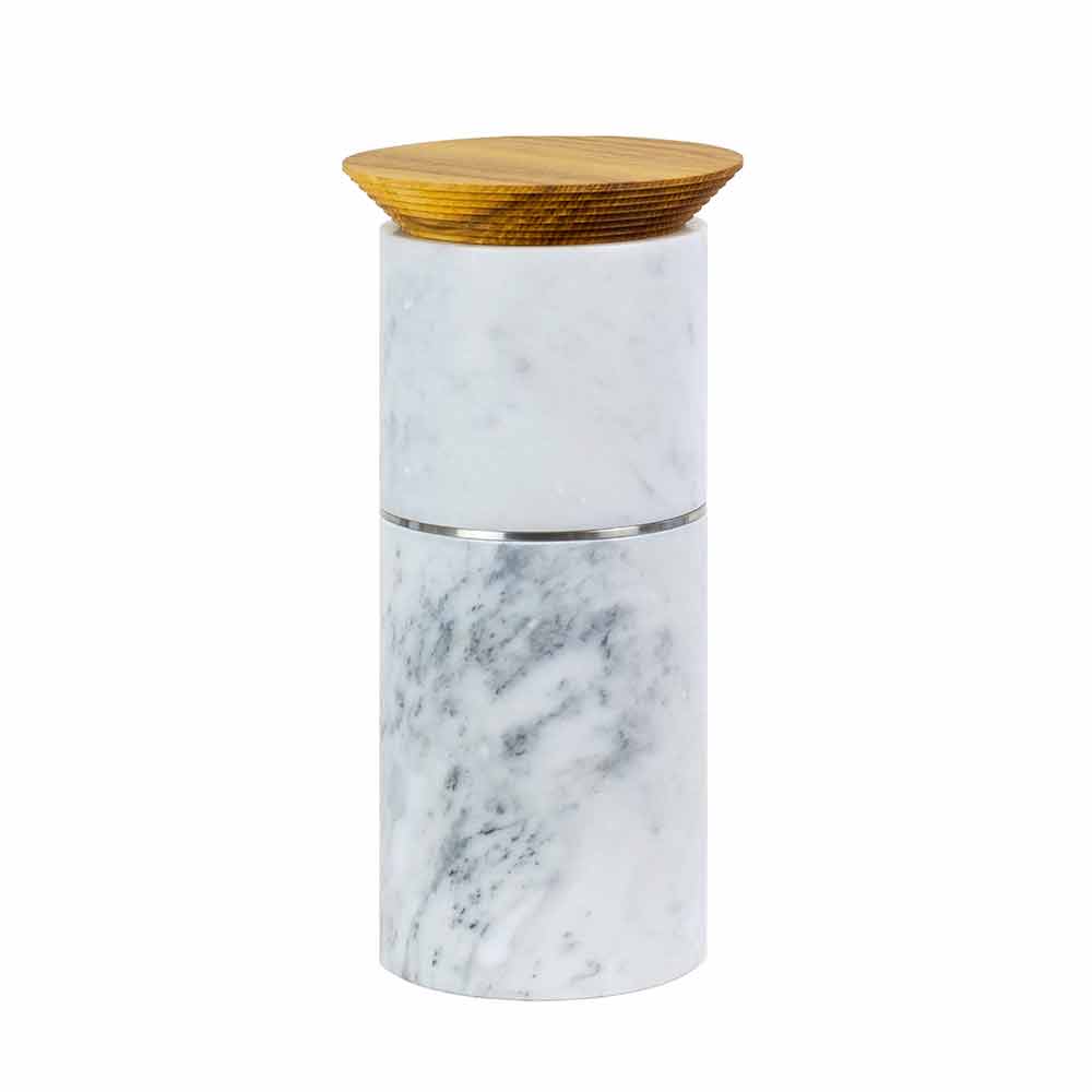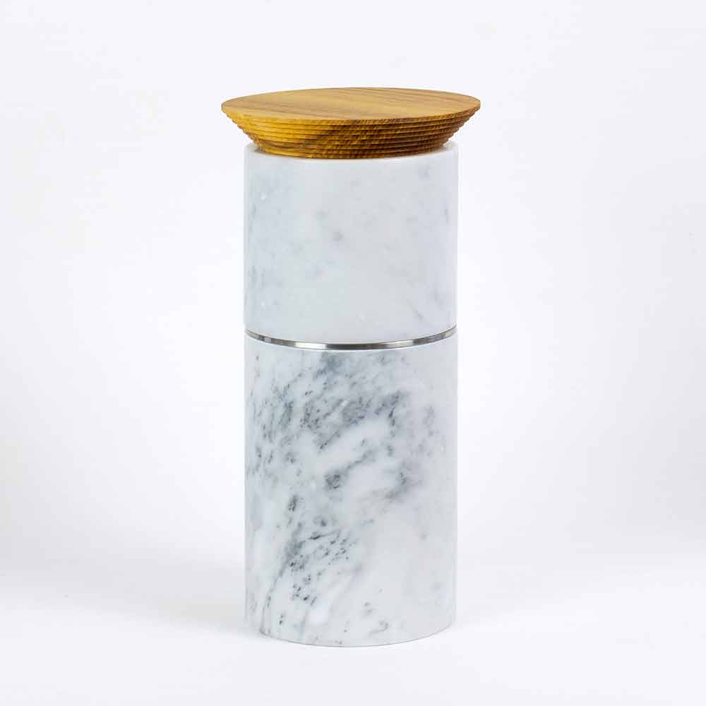 Køkken tilbehør tårnsammensætning i marmor, træ og stål af høj kvalitet fremstillet i Italien.