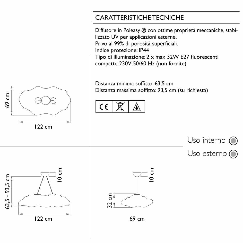Nèfos ophængslamper tilføjer dybe følelser til fornøjelsen ved at møblere. Som drømmende skyer med en behagelig diffust lysstyrke ved de, hvordan de skal passe yndefuldt ind i enhver indstilling, hvilket bringer en lys, meget behagelig ånde med naturen med sig. Fremstillet i neutrale og blå farver, er Nèfos- lamper udstyret med IP-beskyttelse mod atmosfæriske stoffer, en meget sjælden funktion i vedhængslamper.