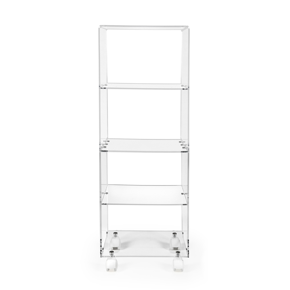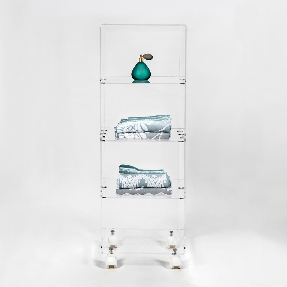 Hver hylde i denne trolley er en scene, der forbedrer, hvad den indeholder, takket være den krystallinske gennemsigtighed af førstevalgs plexiglas. Råmaterialet, 100% virgin polymer plexiglas , sikrer en lysstyrke og glans, der forbliver uændret over tid, en forpligtelse til kvalitet, der kan ses og mærkes.