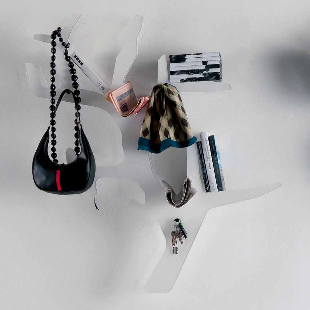 Denne hylde er ideel til at organisere bøger, magasiner, cd'er, men også som en praktisk klædebøjle. Den repræsenterer både et funktionelt møbel og et originalt dekorativt supplement. En innovativ idé, der gør møblering af dine rum til en virkelig sjov, så du kan berige miljøet med personlighed takket være et strejf af farve. De tilgængelige farver giver mulighed for at indsætte det i ethvert område af huset og formå at kombinere det med de mest varierede møbler, lige fra det mest kreative og farverige til det mest ædru og diskrete. Dens æstetiske omfatter funktionalitet og design og tilbyder en ekstremt kreativ møbleløsning, der er i stand til at forny ethvert rum med sin livlige sjæl.