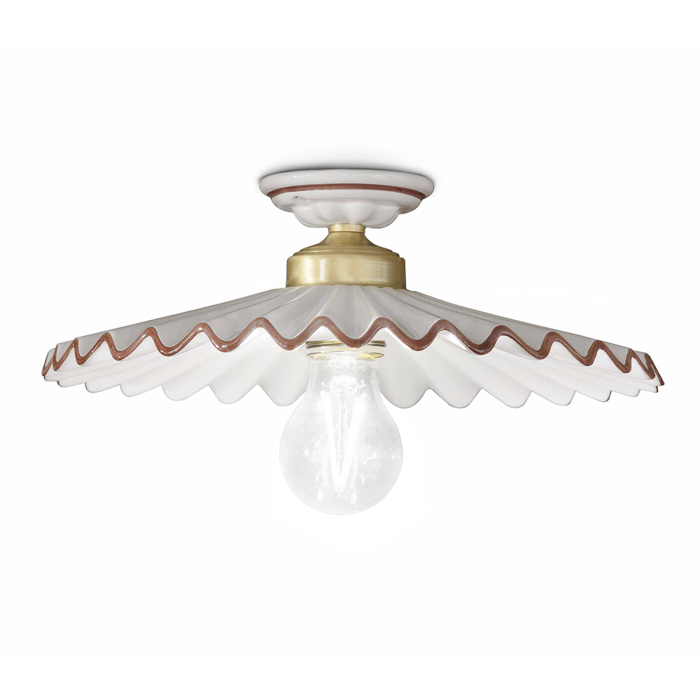 Loftslampe i plisseret blank keramik og håndmalet kant, lavet i Italien af Ferroluce.