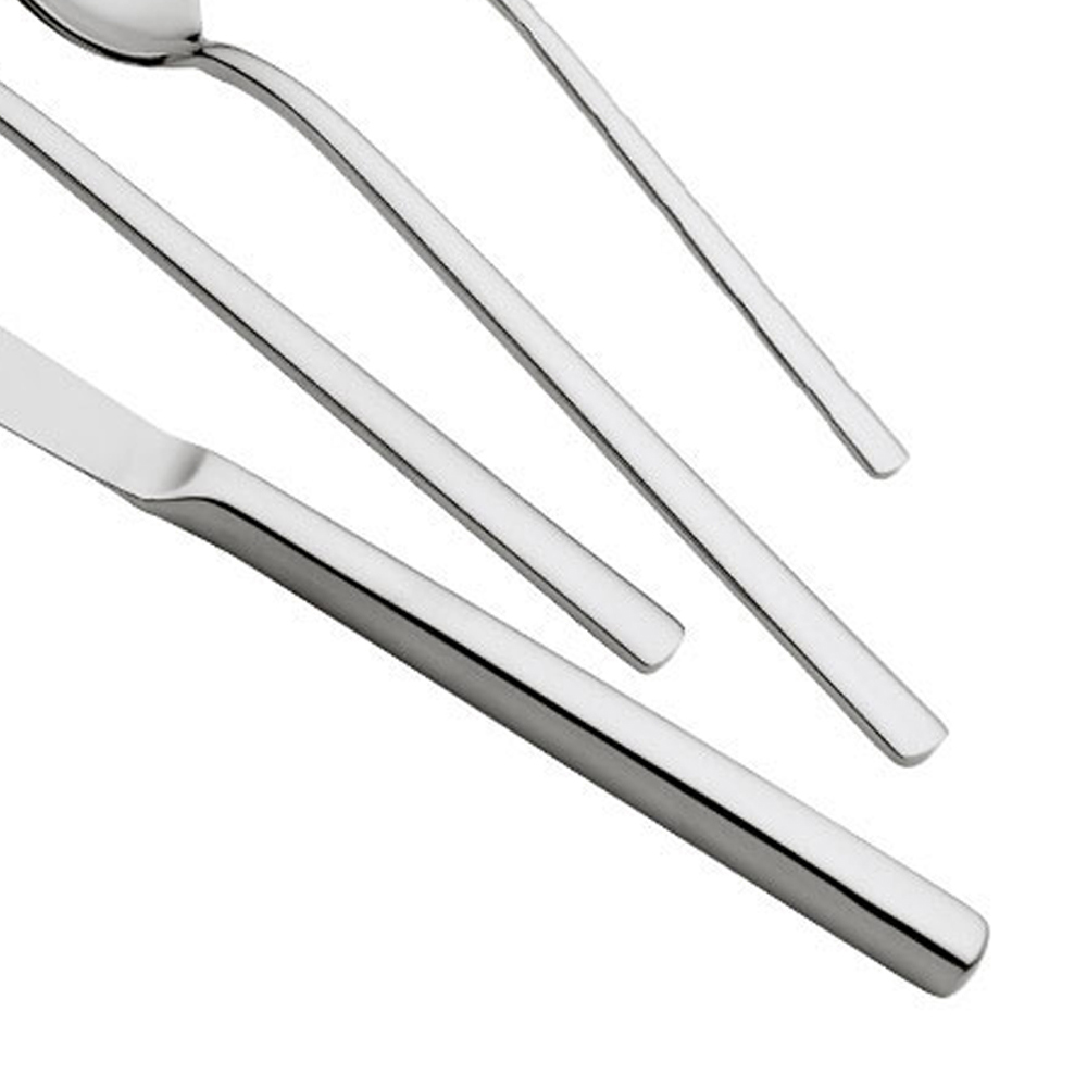 18/10 rustfrit stål bestik, det vil sige med 18% krom og 10% nikkel, som garanterer fremragende modstandsdygtighed over for korrosion og nem rengøring med en fremragende hygiejnisk koefficient.