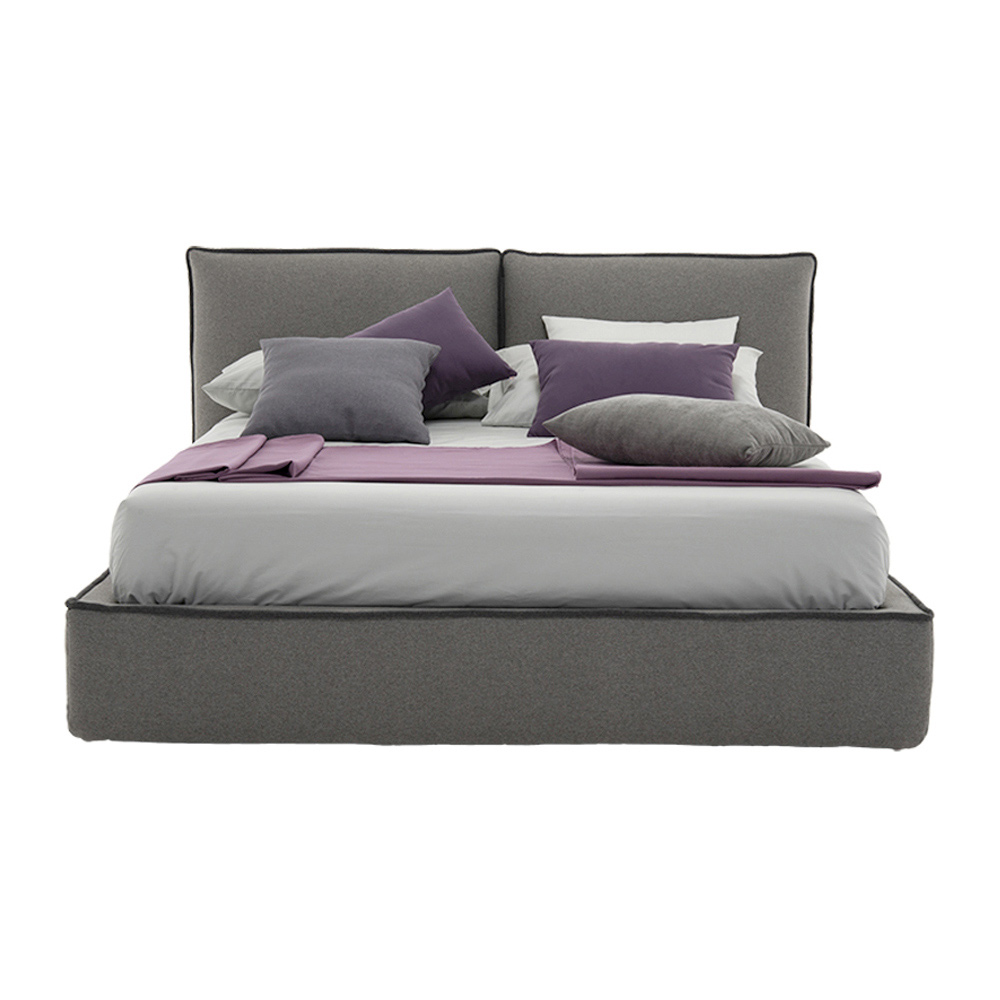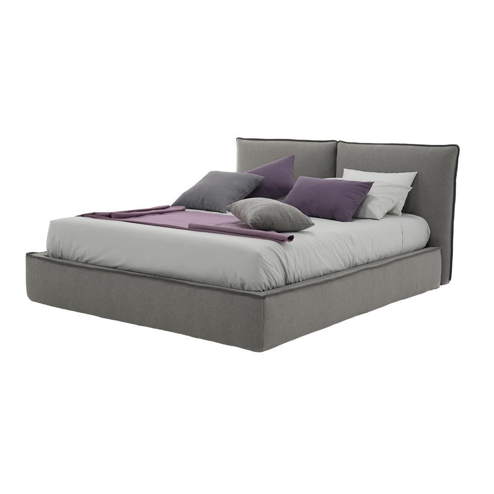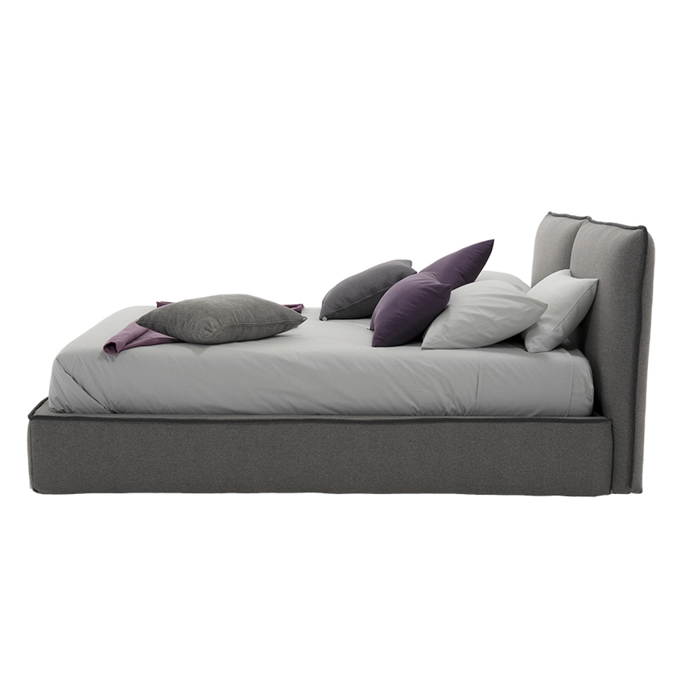 Dobbeltseng af høj kvalitet betrukket med stof eller øko-læder, håndlavet i Italien med opbevaringsboks.