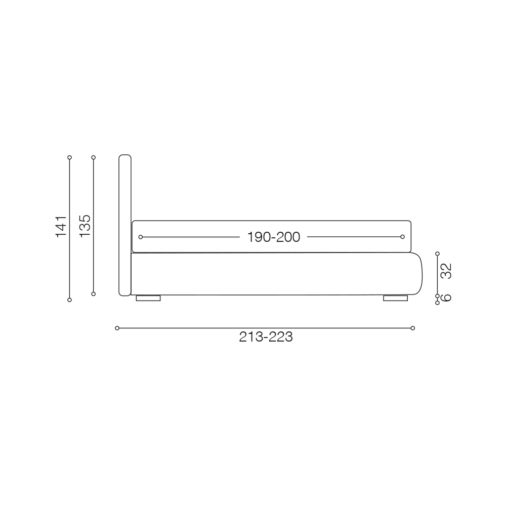 Sengerammen, 32 cm høj, har let aftagelige betræk (ikke-aftagelig sengegavl). Fødderne er lavet af træ og er 6 cm høje.
