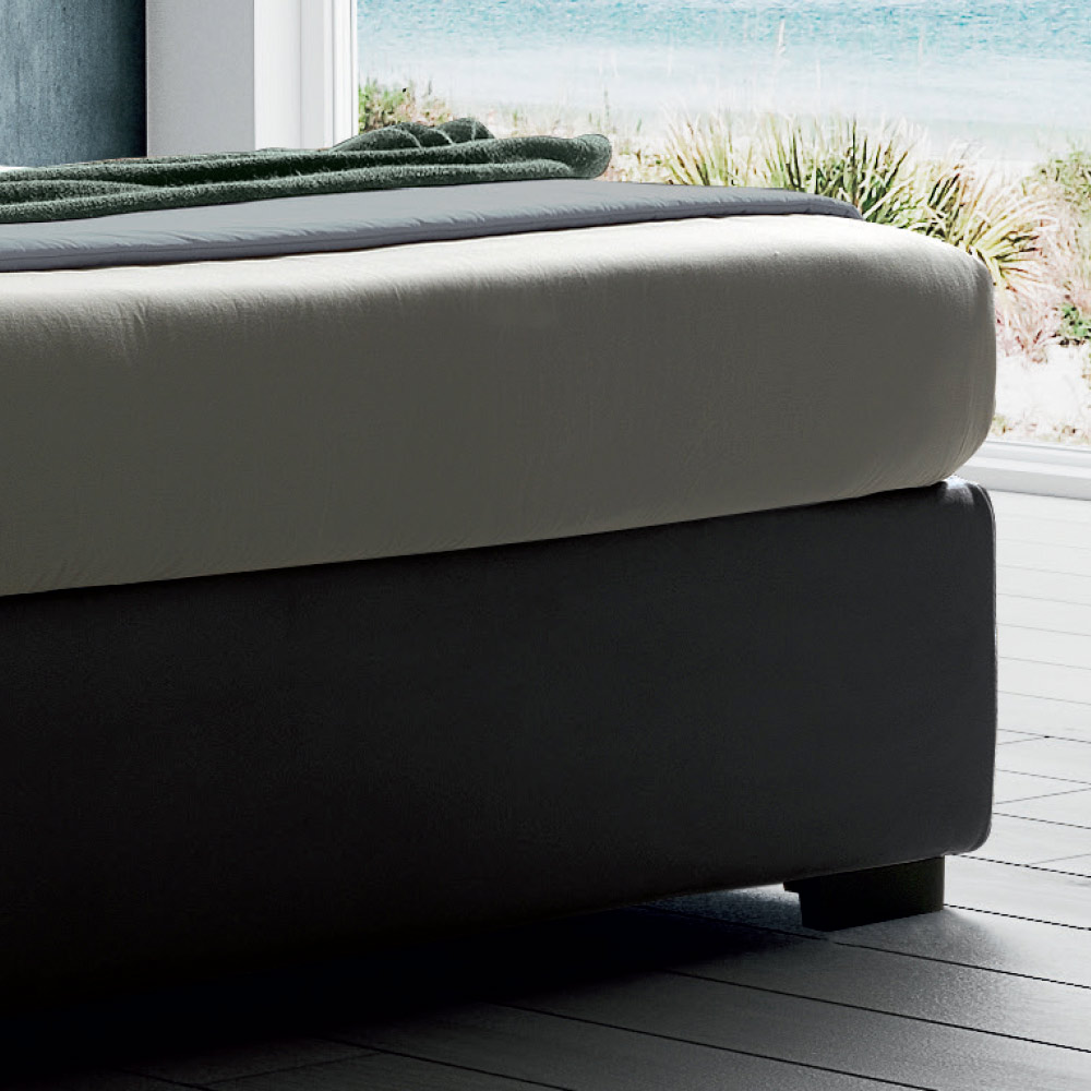 - Med opløftbar opbevaringsboks : det er den ideelle løsning til at optimere pladsen og holde soveværelset altid ryddeligt. Faktisk kan tæpper, tøj, puder osv. opbevares inde i kassen. Beholderen er udstyret med en ortopædisk løftebund, lavet af rørformet jern malet med epoxypulver ved 200° og har to separate og lige langt lodrette jernarmeringsstænger. Metalrøret måler 40x28 mm. Lamellerne er hele og udført i 68x8 mm birkekrydsfiner. Der er også mulighed for at købe det eksklusive og innovative valgfrie containerskab efter forespørgsel . Det er et rigtigt garderobeskab med skydelåger, anbragt inde i containerkassen. Den måler L161 x D99 x H18 cm og er udstyret med flere rum til organisering af tøj, sko, håndklæder osv. Den kan kun monteres på senge, der passer til en 160, 170, 180 eller 200 cm lamelbund/madras. Kontakt os for mere information.