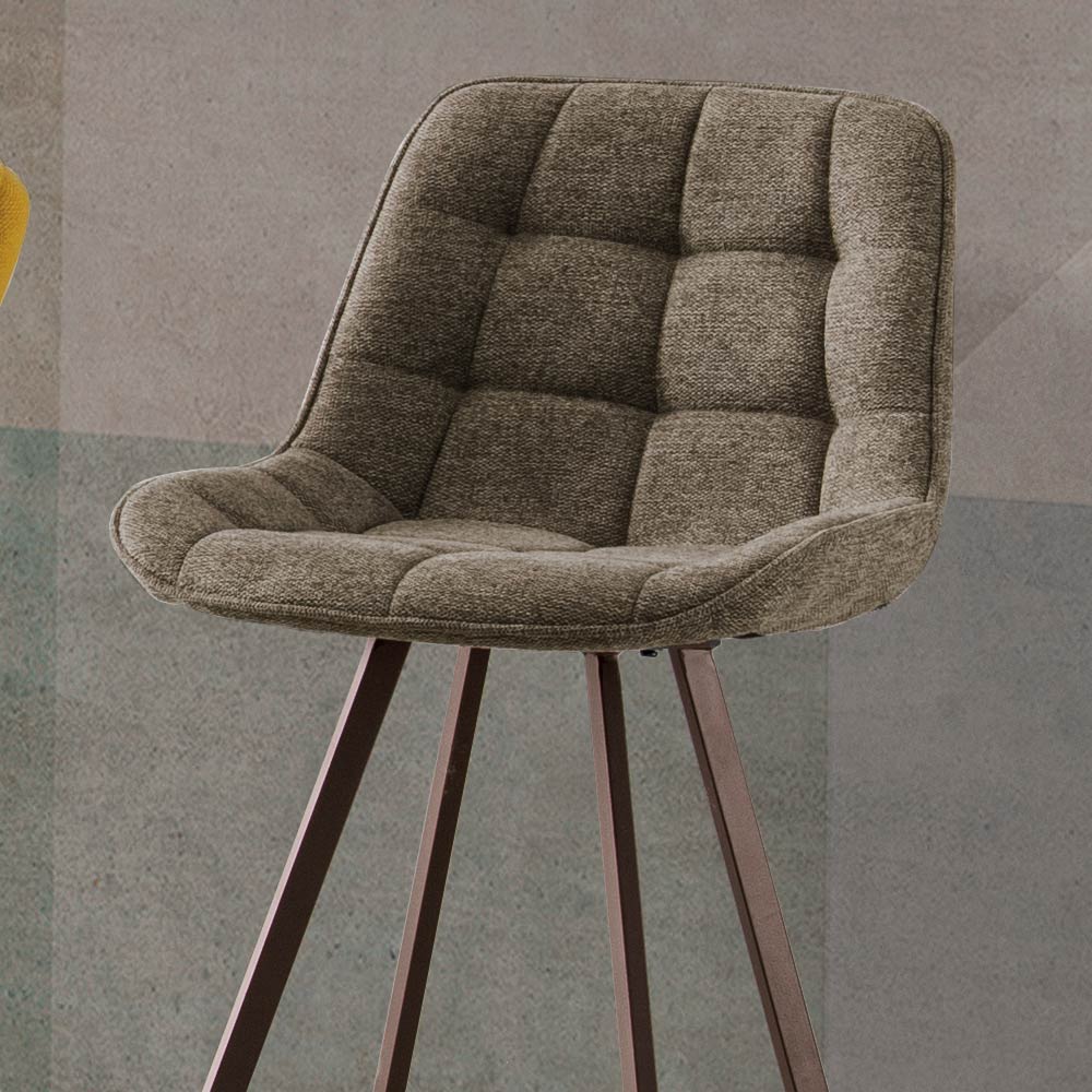 Høj skammel i polstret stof med 2-delt metalstruktur.