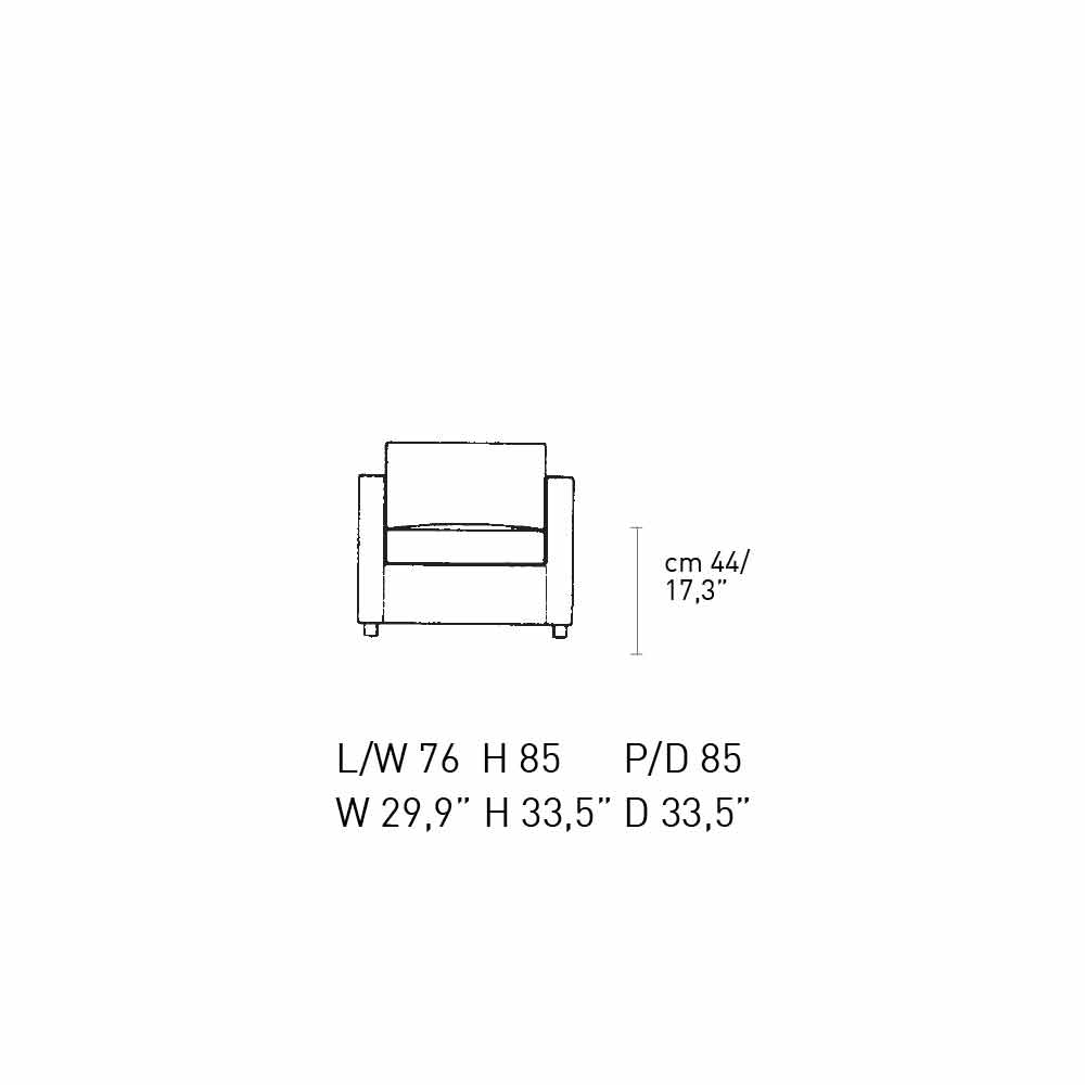 Moderne lænestol helt fremstillet i Italien med indvendig træstruktur polstret med polyurethanskum og foring af polyesterfiber, rygpude i steriliseret gåsedun, sædehynde i polyurethanskum og