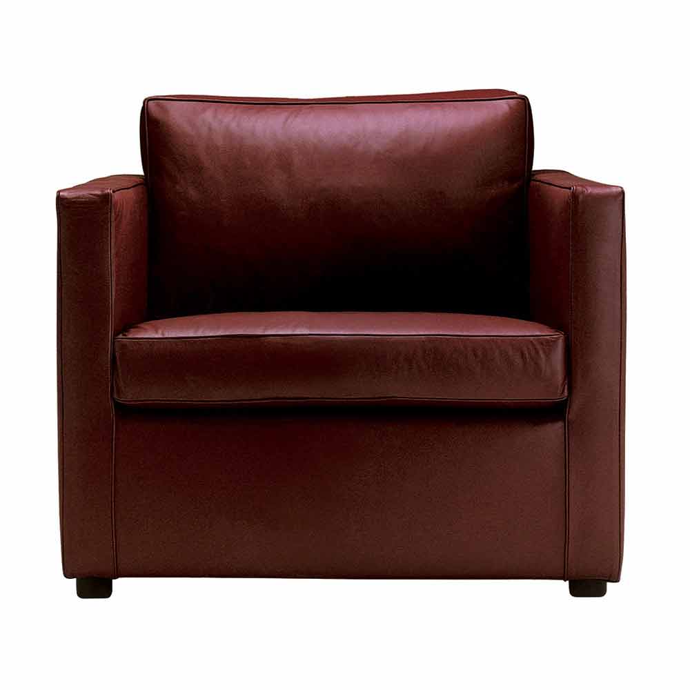 Lænestol i stuen betrukket med læder lavet i Italien.