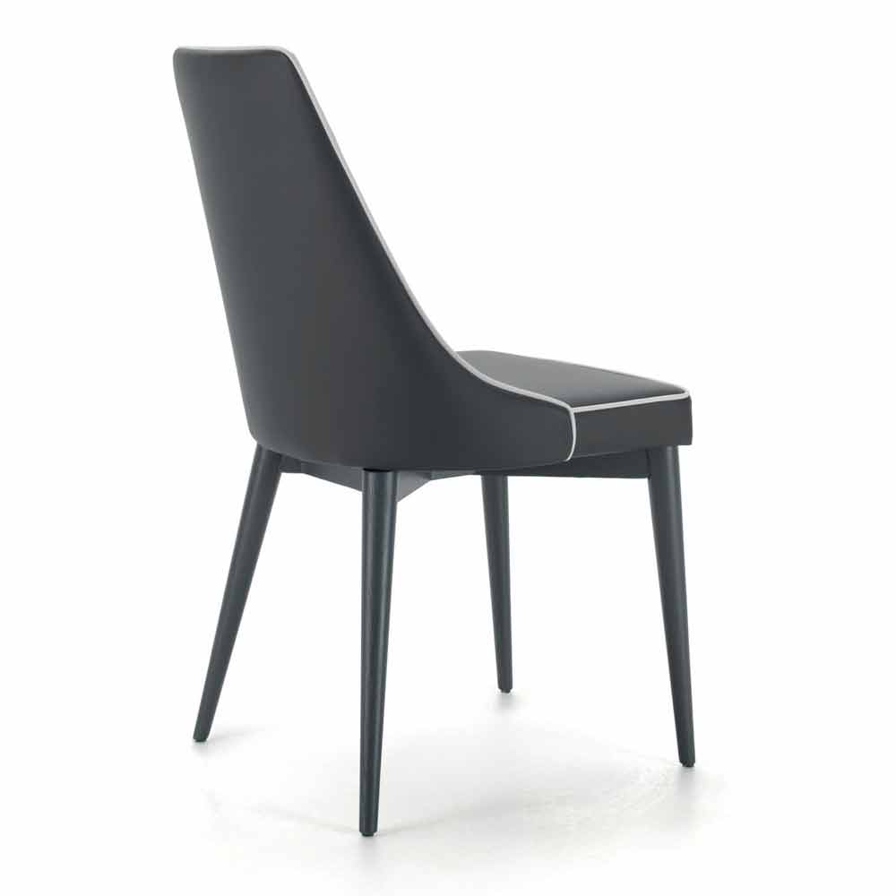Luksus polstret stol med fod af grafitstål og sæde i øko-læder med hvide kanter; håndlavet i Italien.