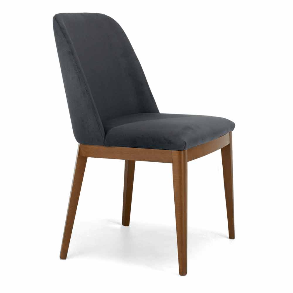 Moderne spisestuestol med bund af egetræ og polstret stofsæde; håndlavet i Italien.