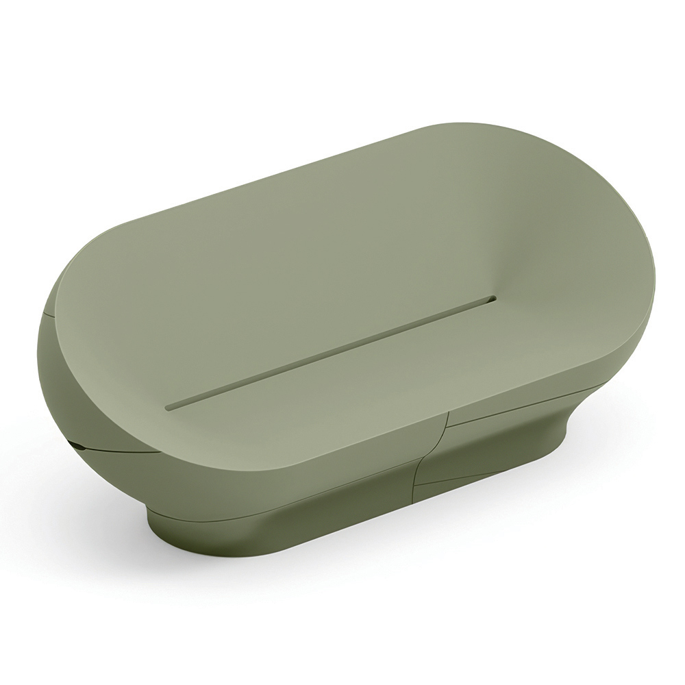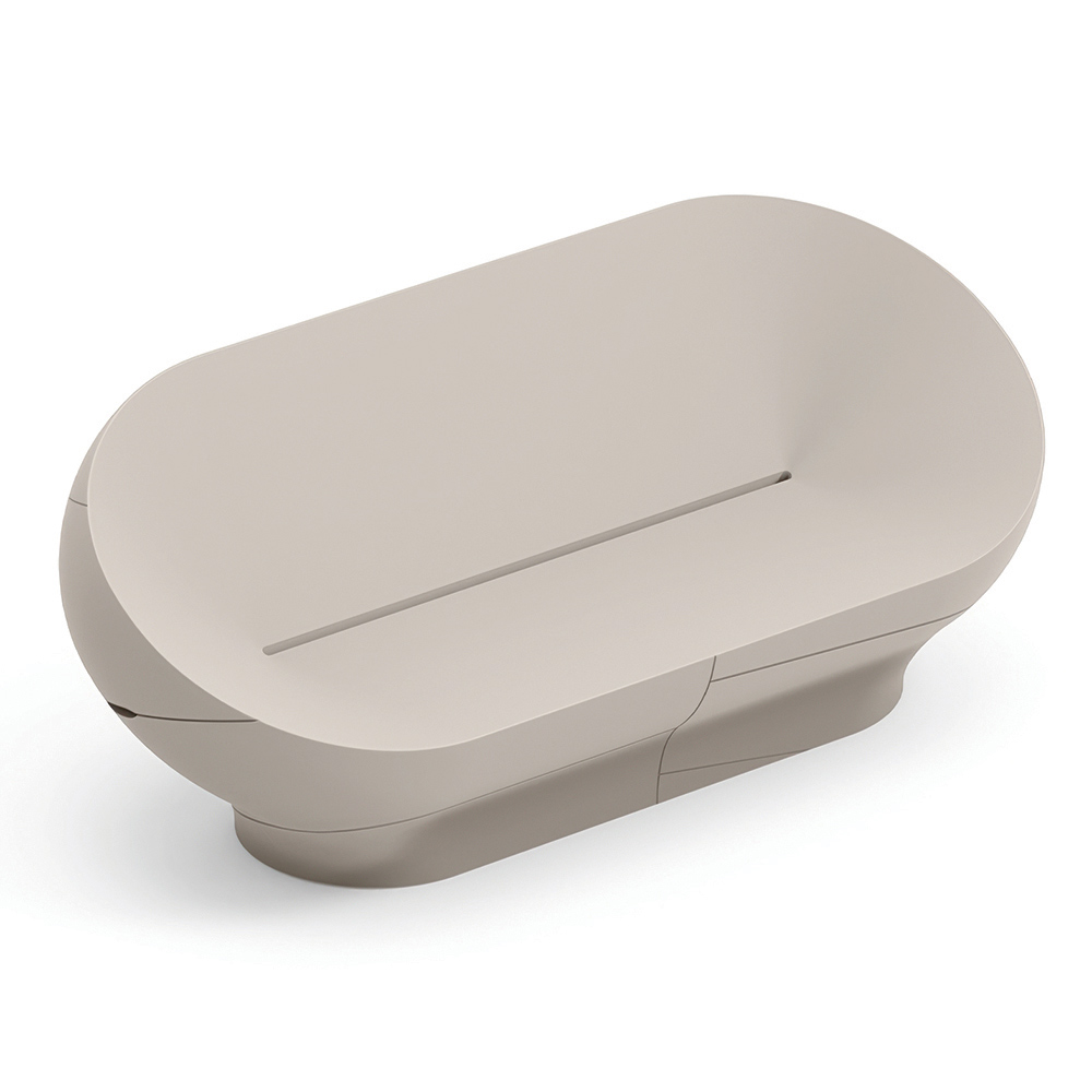 Denne sofa skiller sig ud med sine bløde, omsluttende linjer , inspireret af naturlige former, der skaber en harmonisk og moderne visuel effekt. Den kompakte, flydende monoblokstruktur tilføjer karakter til rummene, samtidig med at den bevarer en enkel og elegant æstetik.
