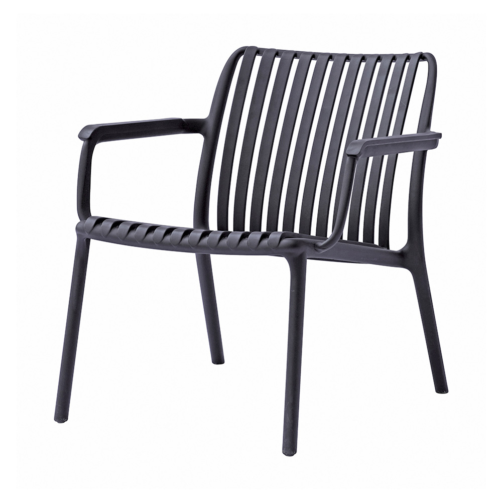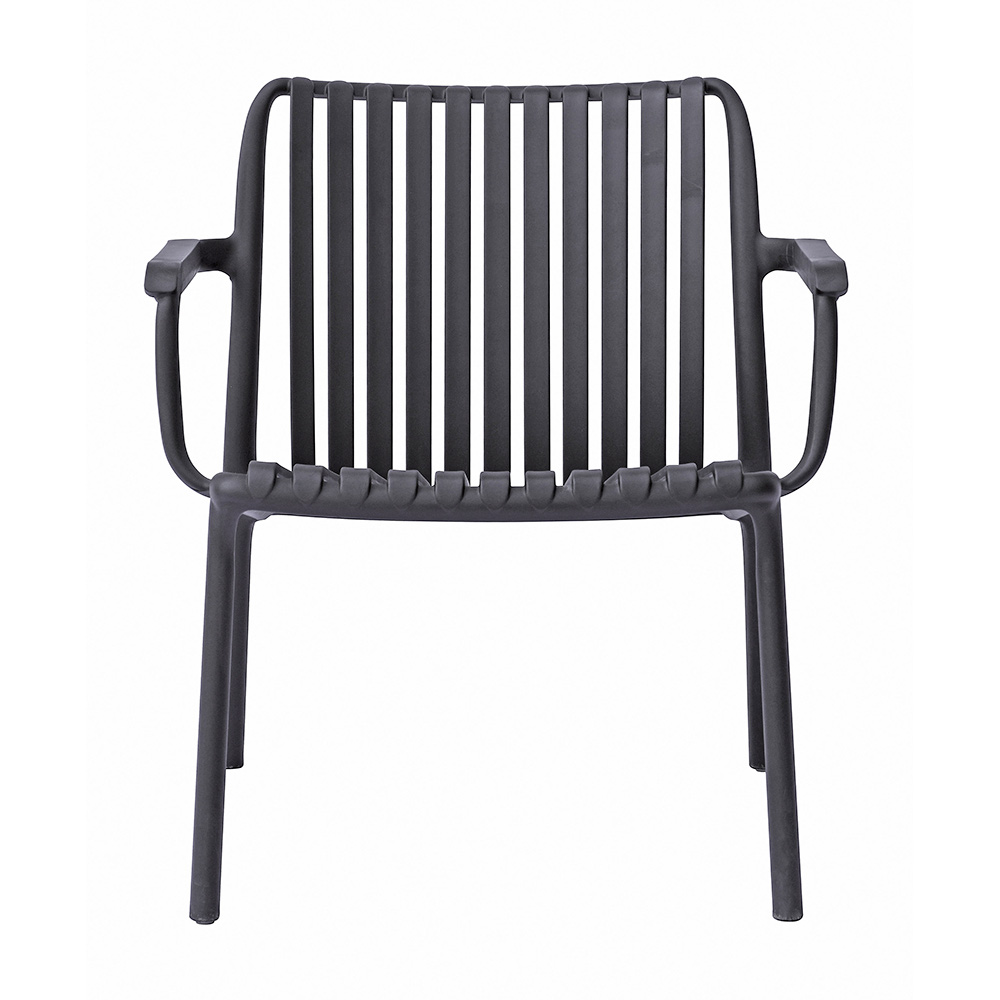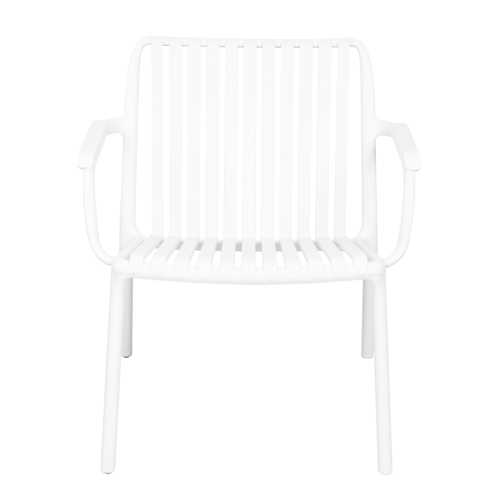 Denne havelænestol kombinerer moderne stil, komfort og holdbarhed og tilbyder den ideelle løsning til smagfuld indretning af ethvert udendørsområde. Den er lavet af polypropylen med tilsat glasfiber , hvilket garanterer en solid, let og holdbar struktur, perfekt til daglig udendørsbrug.
