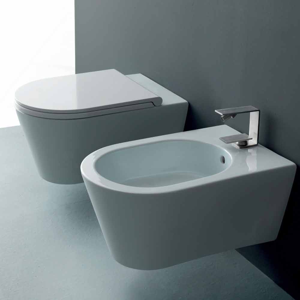 Solrund moderne keramisk væghængt WC 57x37 cm, lavet i Italien