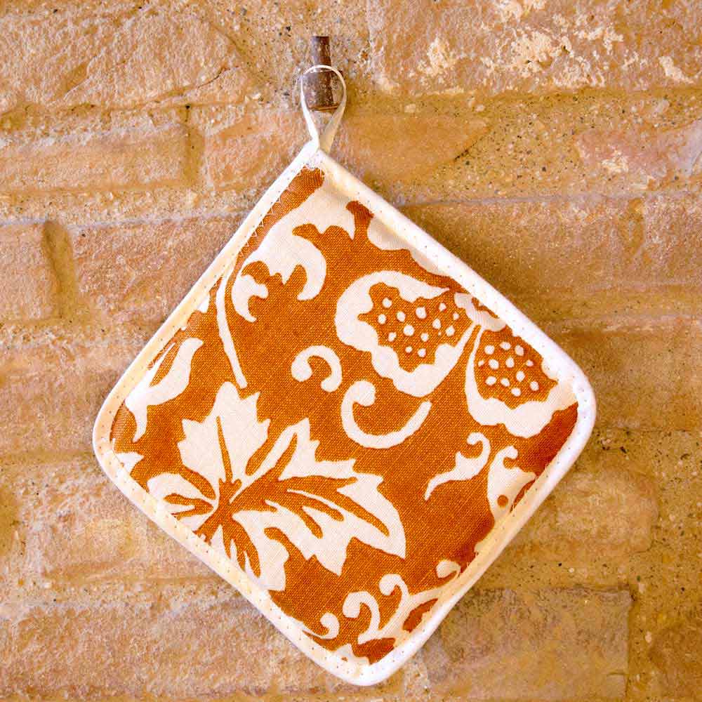 Grytekluter i rent linned af højt italiensk håndværk dekoreret med eldgammelt håndtrykt design, fås i fem varianter, et unikt kunstværk fremstillet i Italien.