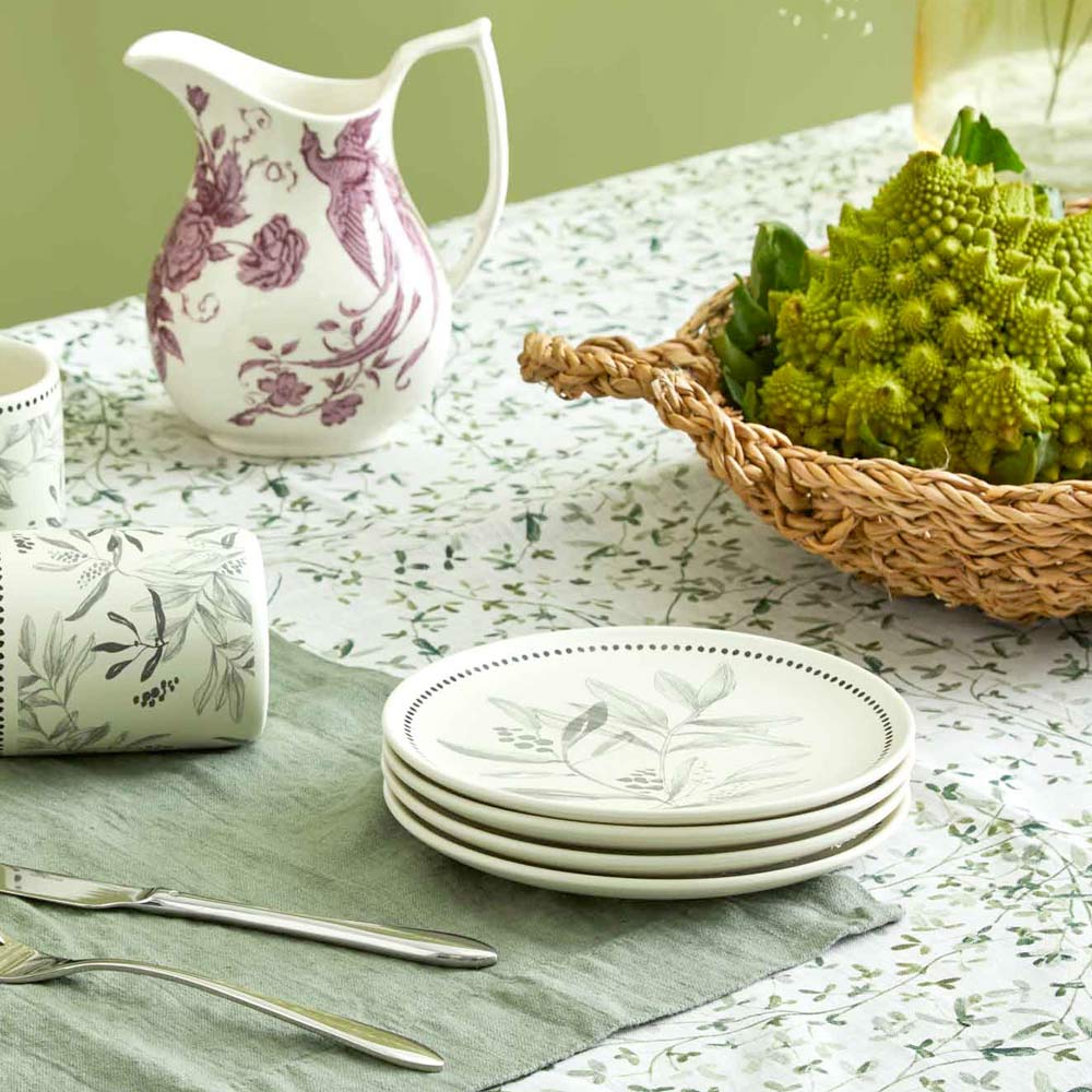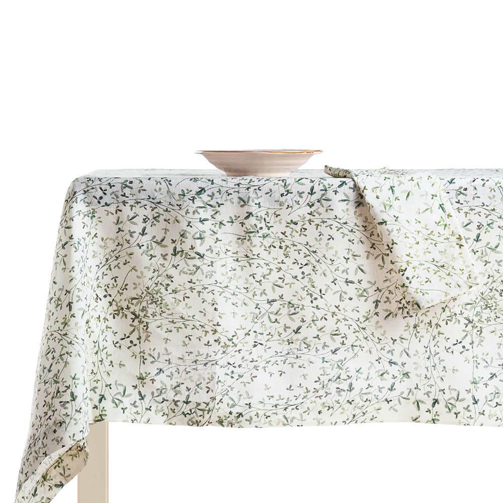 Denne printede ren hørdug er et mesterværk af design og funktionalitet til dit bord. Den delikate plantefantasi trykt på denne dug beriger ikke kun miljøet med et strejf af natur, men løfter også hvert måltid ved at forvandle din spisestue til et indbydende og stilfuldt rum.