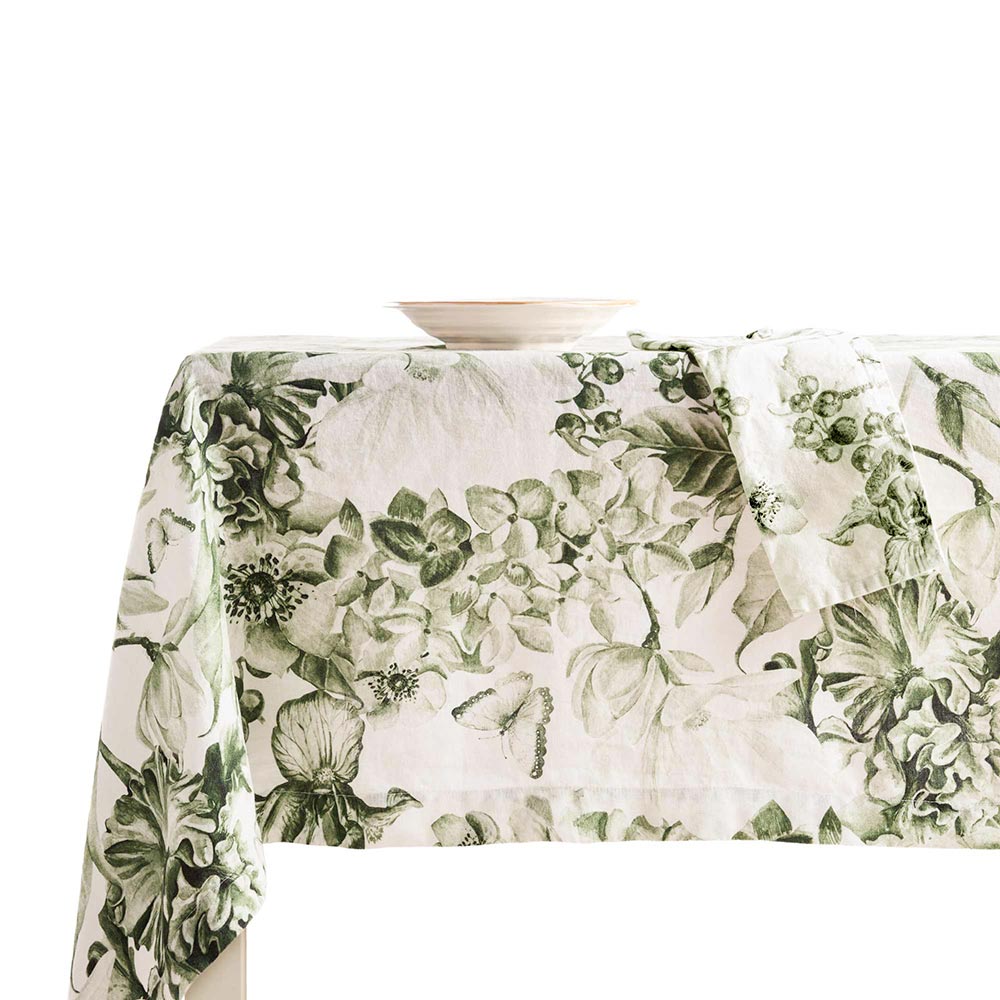 Denne printede og beklædningsvaskede linneddug er et sandt mesterværk af elegance og stil. Dets frodige blomsterdesign bringer et strejf af natur og friskhed til ethvert bord, hvilket gør det ideelt til enhver lejlighed, fra formelle middage til afslappede familiefrokoster. Kvaliteten af rent hør, kendt for sin holdbarhed og modstandsdygtighed , sikrer, at denne dug forbliver et centralt element på dit bord i årevis.
