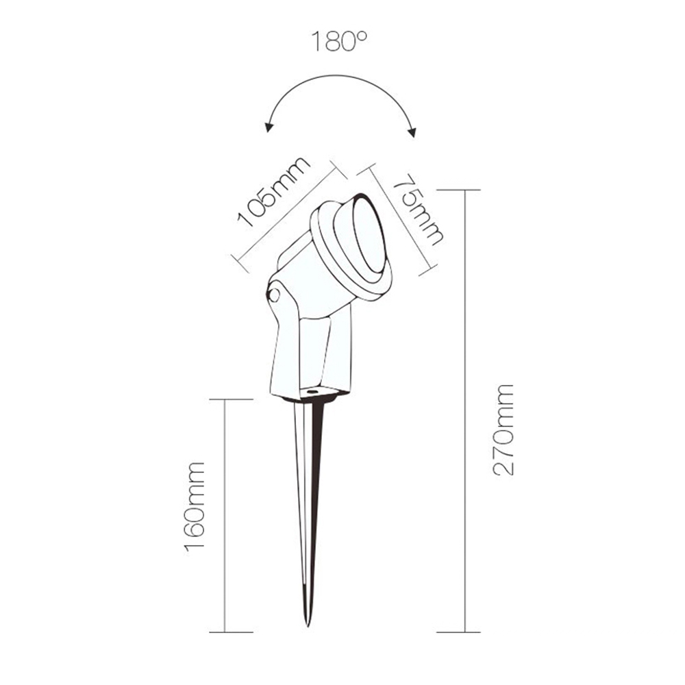 Udendørs spotlight projektor i sort støbt aluminium med 180° justerbar krop komplet med 5W LED . En LED-spot til udendørs brug med en spids, der skal lægges ned i jorden, kendetegnet ved en minimal stil og høj funktionalitet, som giver dig mulighed for at projicere en anderledes lysstråle efter dine behov takket være muligheden for at orientere den efter dine behov. Ideel til belysning af planter, træer, blomsterbede inde i udendørs rum såsom haver både i boligrum og i kontraktmiljøer.