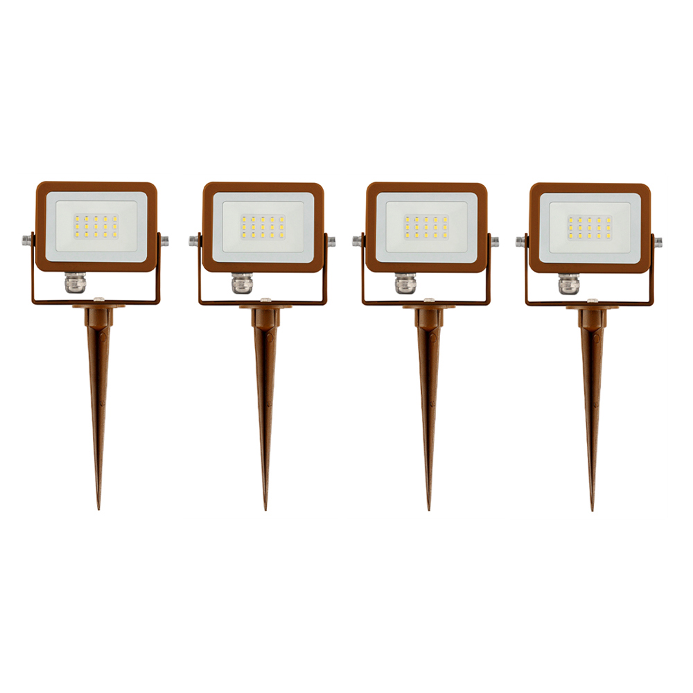 Udendørs led projektor i aluminium med corten finish, 4 stk.