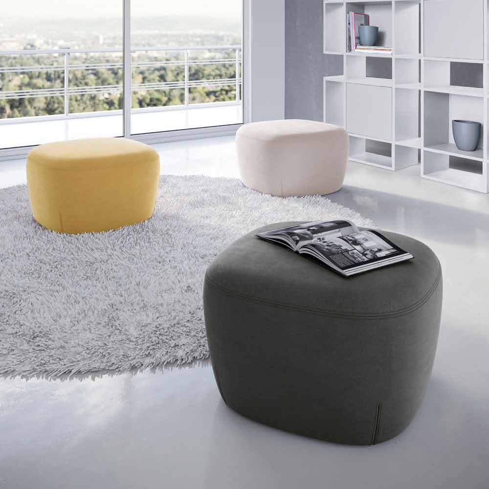 Firkantet puf til stue betrukket og beklædt med Made in Italy stof.