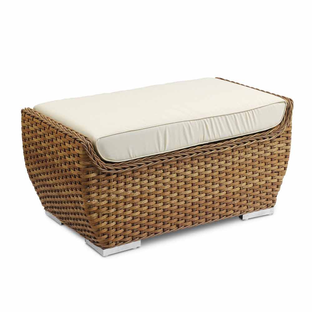 Puff til haven lavet af fin luksus vævet syntetisk rotting og hvid eller ecru pude.