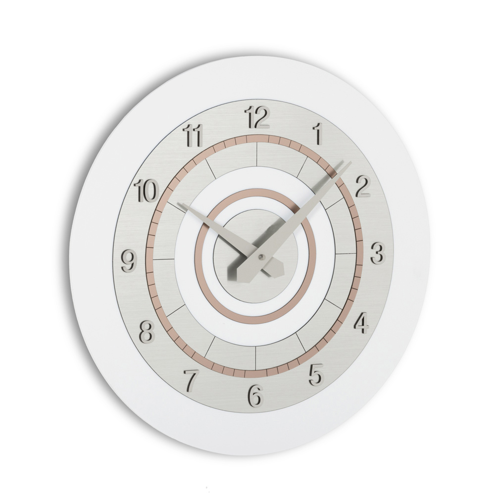 En perfekt blanding af grafisk design og funktionalitet, dette vægur lavet af halvtæt PVC er et ægte blikfang for dem, der kan lide at indrette med personlighed. Samspillet mellem koncentriske cirkler skaber en hypnotisk og dynamisk visuel effekt, der straks fanger opmærksomheden og forvandler væggen til et ægte kunstværk.