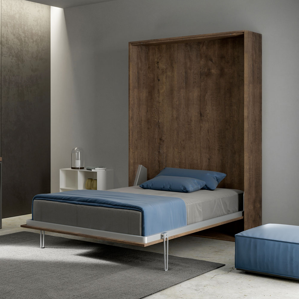 Sengestellet er lavet af 18 mm tyk melaminspånplade , hvilket sikrer modstandsdygtighed og holdbarhed over tid. Åbningsmekanismen er jævn og sikker og forvandler væggen til en komfortabel seng med en simpel bevægelse.