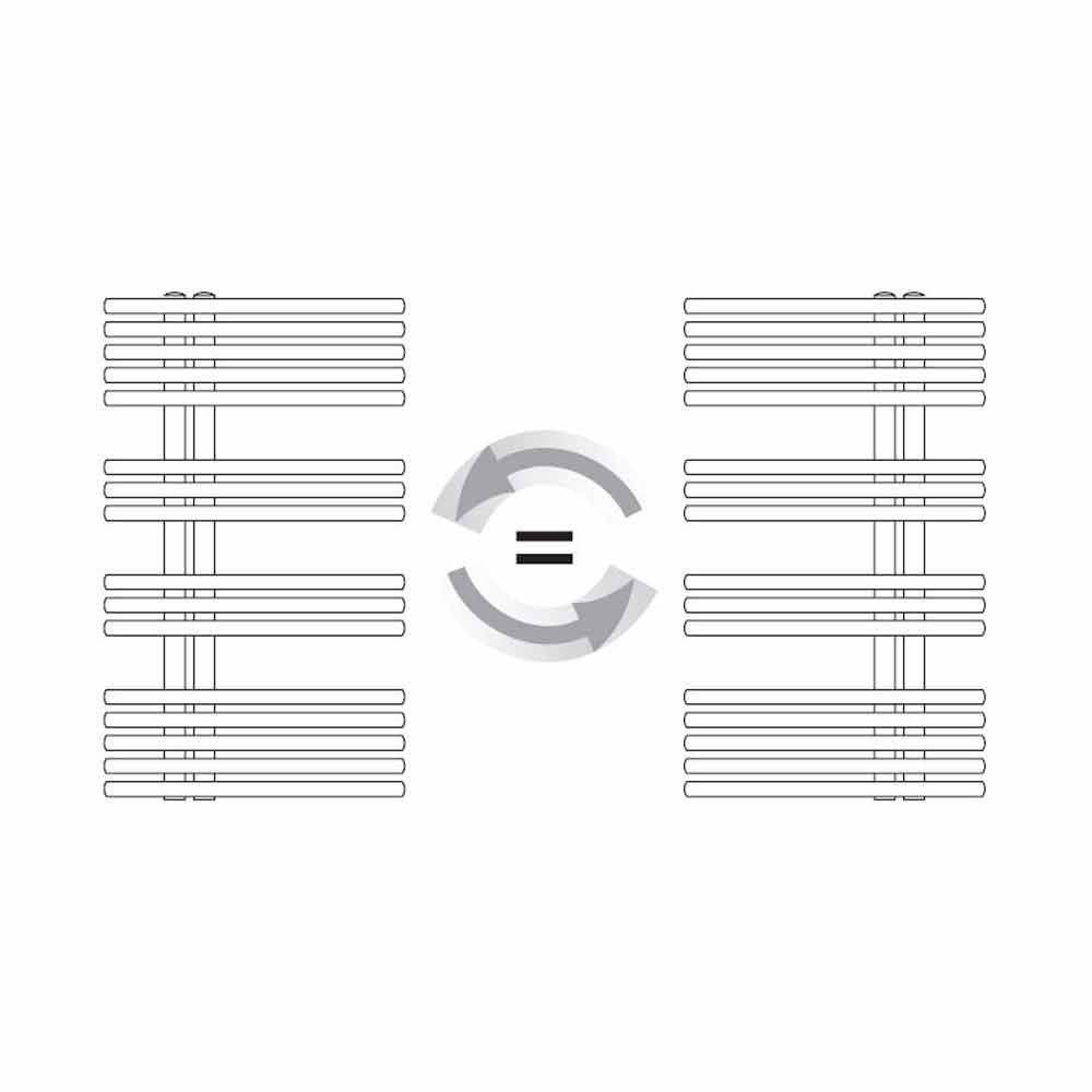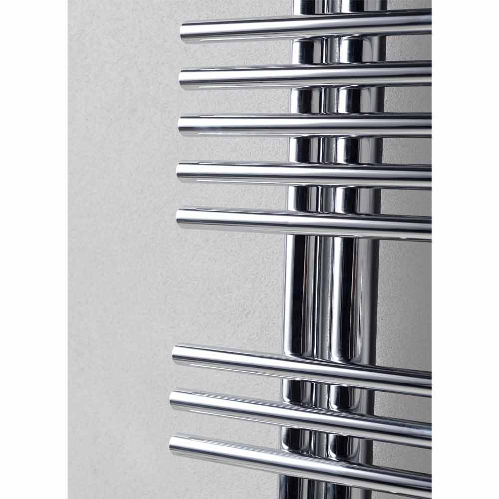håndklædevarmere har et krom design lavet med lodrette rør med en diameter på 35 mm og vandrette runde rør med en diameter på 25 mm. Dens moderne og særlige form gør den