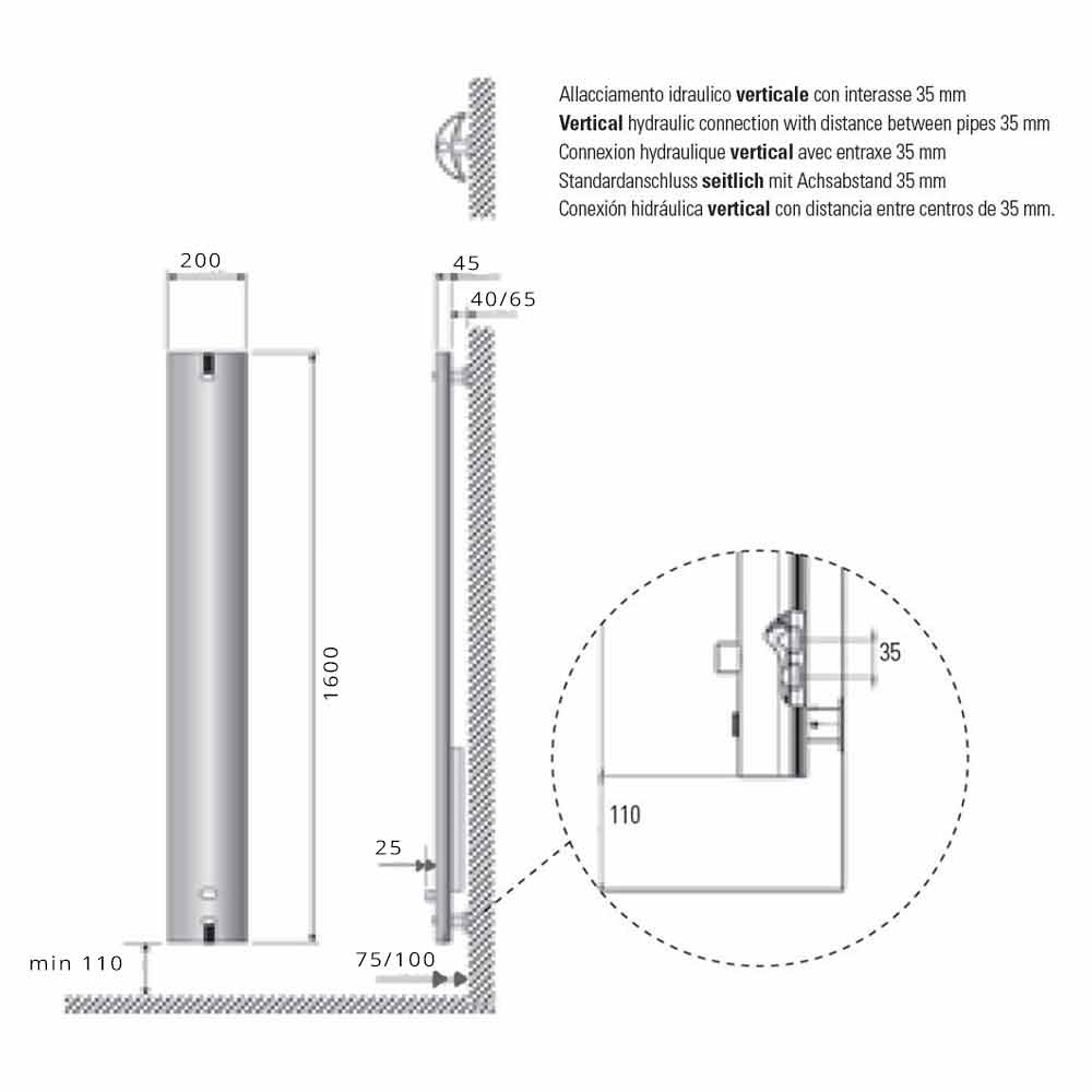 NB: Ventilerne og holderen er ekskluderet for at modtage dem, skriv til os i formularen "Anmod om information". Fås også på anmodning klædebøjlen i satin rustfrit stål, ikke inkluderet i prisen.