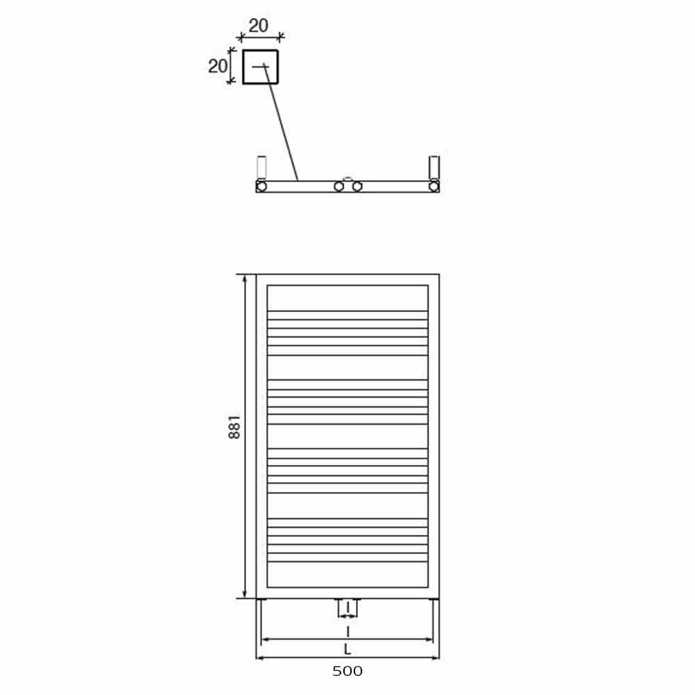 Denne hydrauliske radiator har et krom design med 30x30mm lodrette firkantede rør og 20x20mm vandrette firkantede rør.