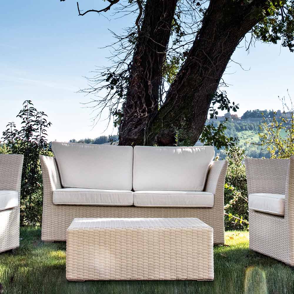 Polyrattan- stellet giver et strejf af modstandsdygtighed og holdbarhed mod elementerne og bevarer sin skønhed over tid. Det matchende sofabord er det ideelle supplement til at servere drinks og snacks, hvilket gør det til det perfekte sæt til dine gæster og dine udendørs aftener.