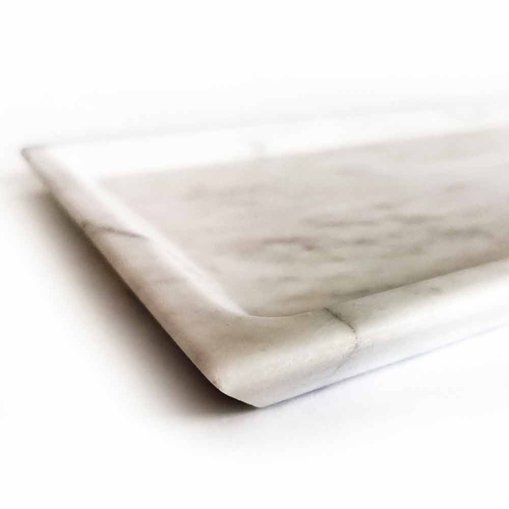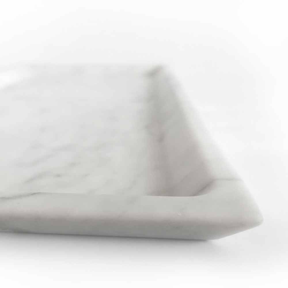 Rektangulær bakke lavet af moderne hvid Carrara marmor Made in Italy.