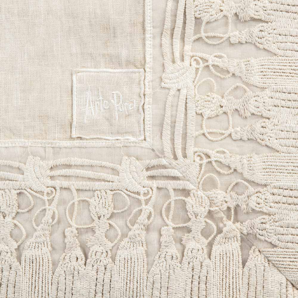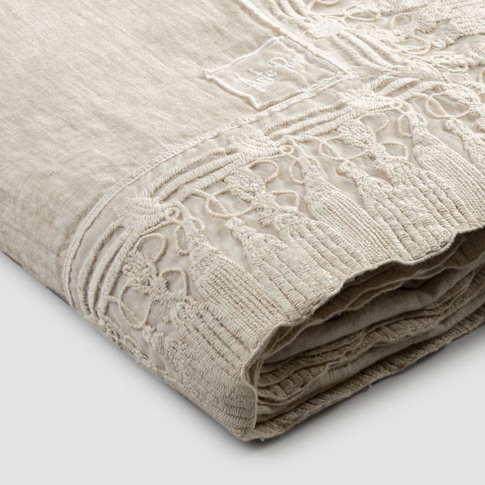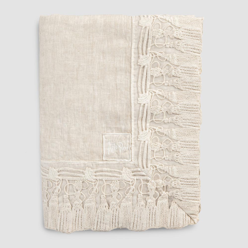 Rektangulær linnedug med blonde kvaster, håndlavet luksus lavet i Italien.