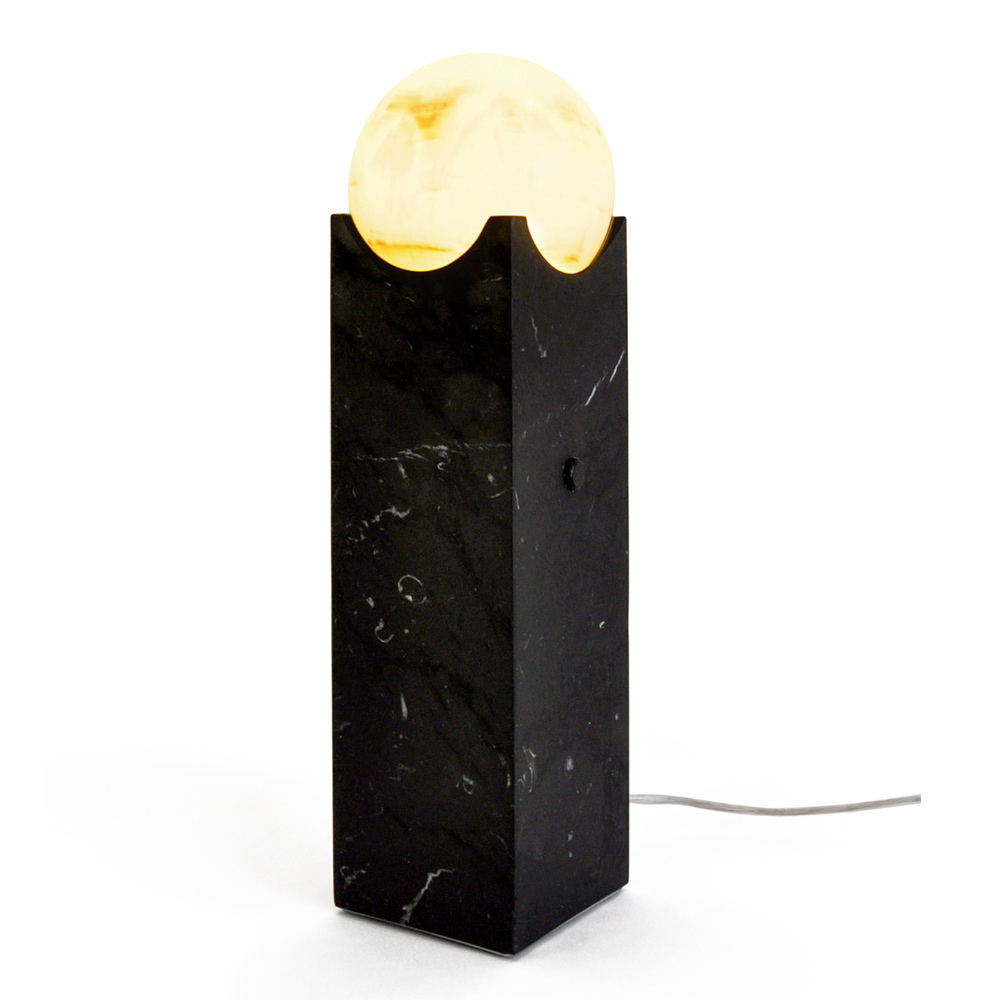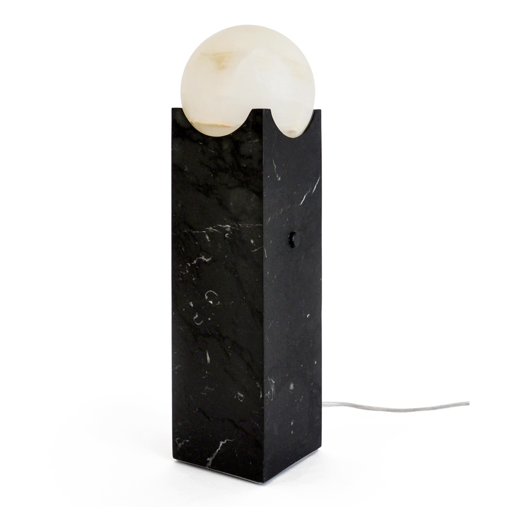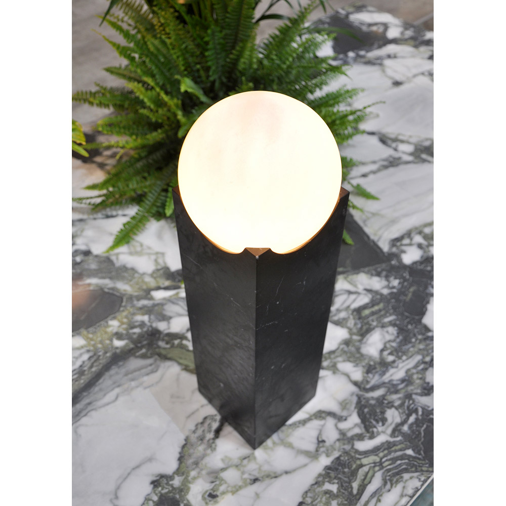 Denne bordlampe repræsenterer en fusion mellem majestæten af sort marmor og renheden af en lyskugle. Det modige, moderne design skaber en stærk, men afbalanceret visuel kontrast, perfekt til den moderne indretning af dem, der elsker at være omgivet af skønhed og luksus .