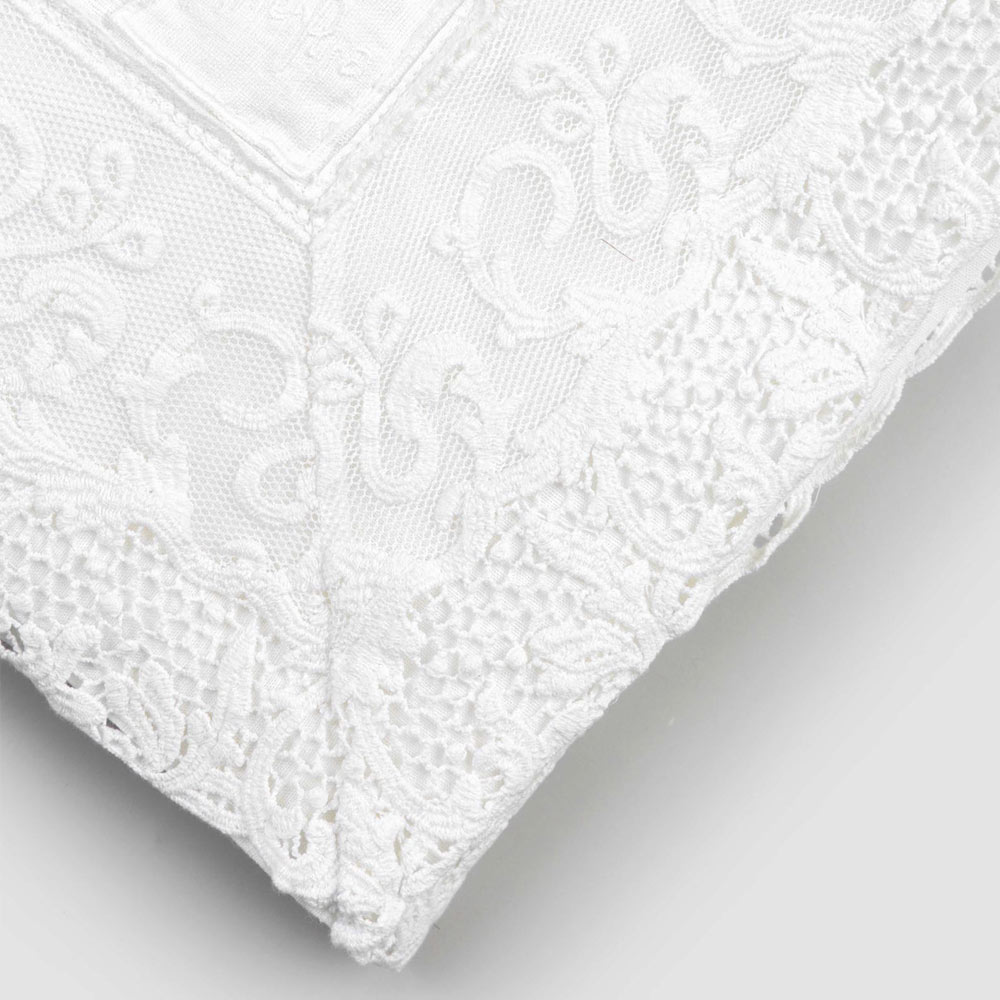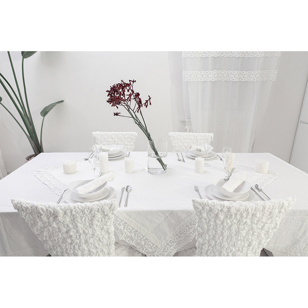 Stor rektangulær duge i rent linned med kanter med eller uden blonder, luksuriøst håndlavet design lavet i Italien.