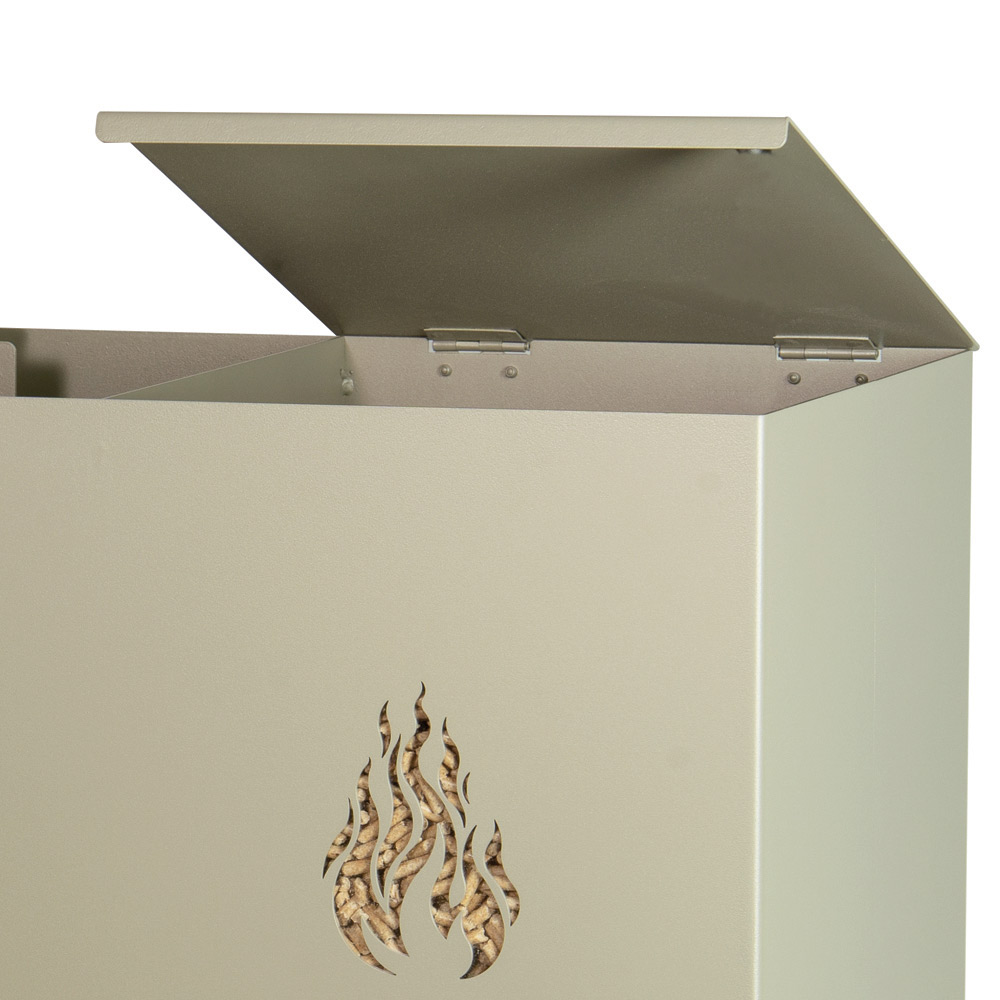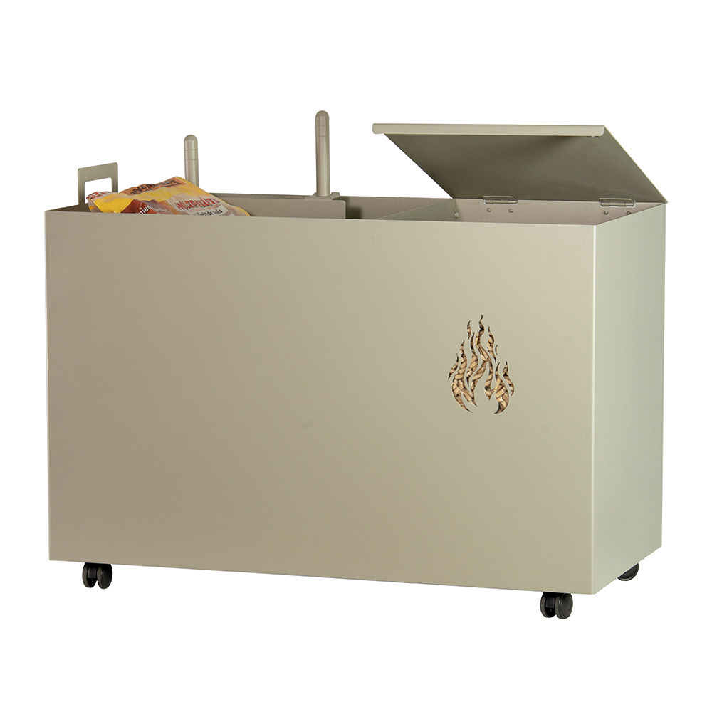 Udstyret med et praktisk låg sikrer denne beholder, at pillerne forbliver tørre og rene, klar til brug. Hjulene på bunden gør den let at flytte, så du kan transportere pillerne fra opbevaringsstedet til din pejs eller brændeovn med minimal indsats. Det robuste håndtag giver yderligere bekvemmelighed ved transport, hvilket gør vognen til et funktionelt og letanvendeligt tilbehør.