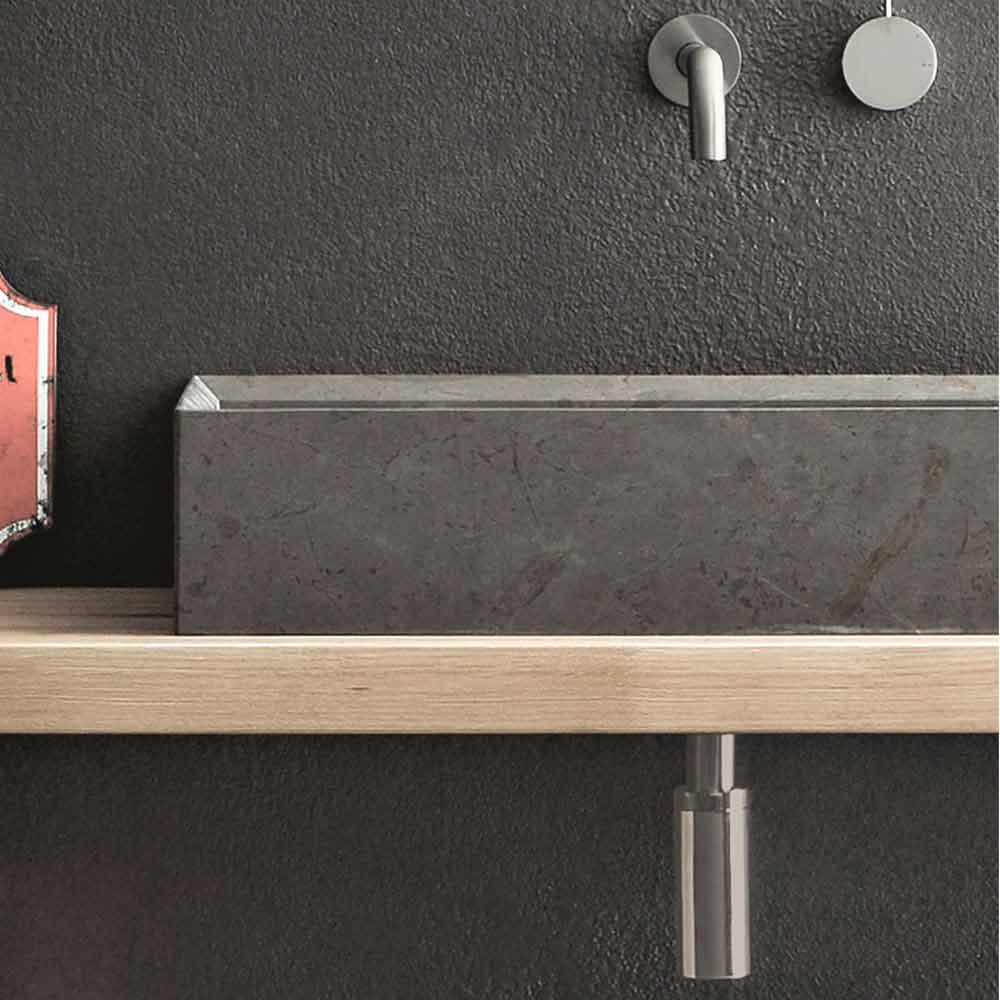 Rektangulær håndvask til bordplade, moderne design i natursten, uden afløbshul.