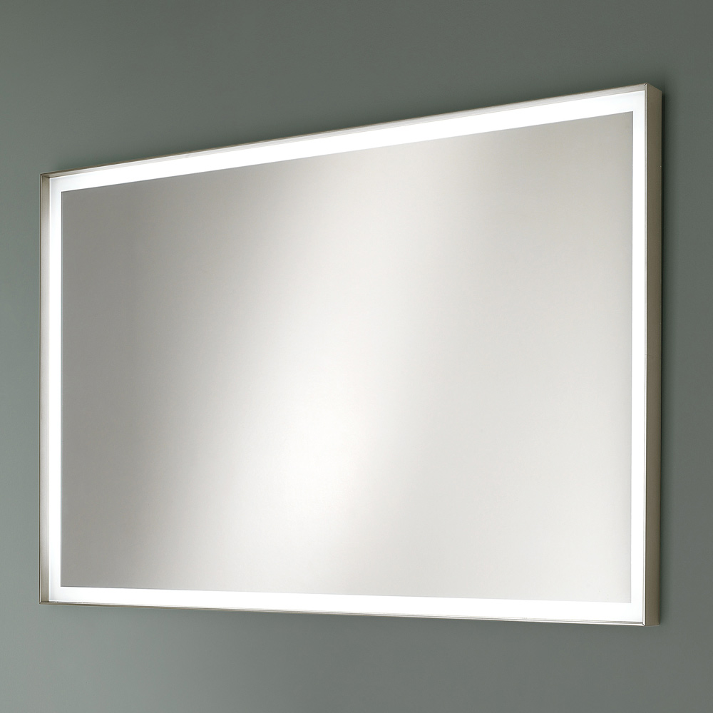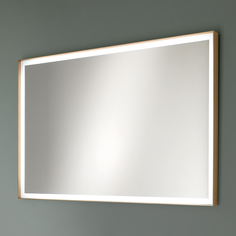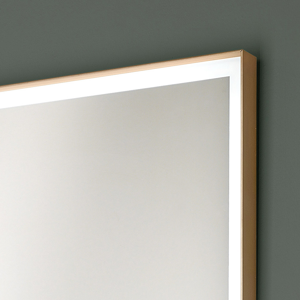 Rektangulært vægspejl med metalramme i 4 finish og LED-lys, fremstillet i Italien.