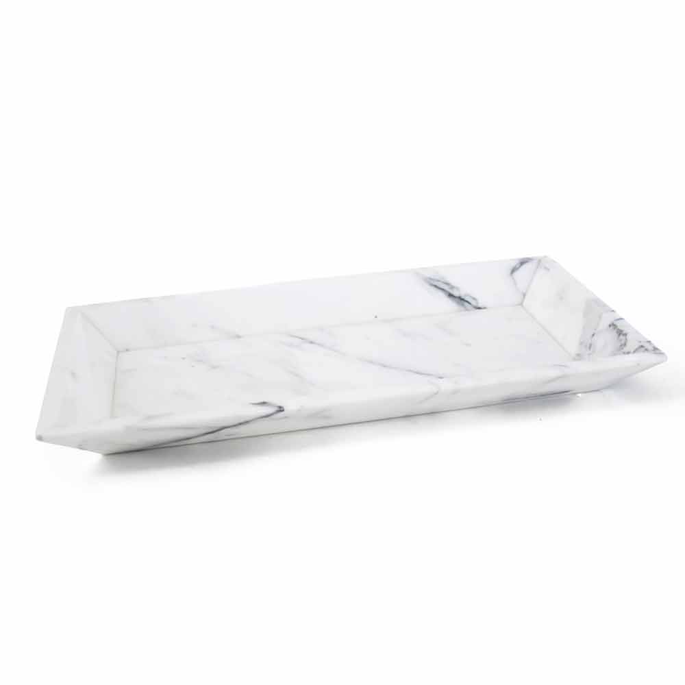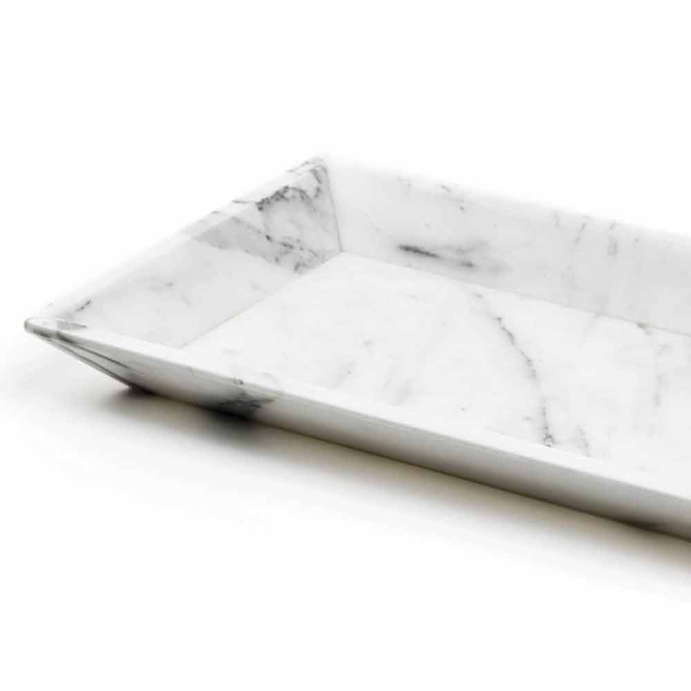 Raffineret bakke, der også kan bruges som en plade med et elegant og raffineret design, der er kendetegnet ved den dyrebare marmor, som den er håndlavet med specialiserede fagfolk. Det er et unikt stykke, da hver brugt marmorblok adskiller sig fra de andre for vener og nuancer.