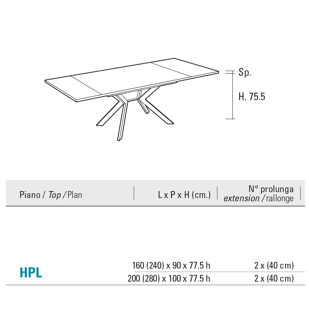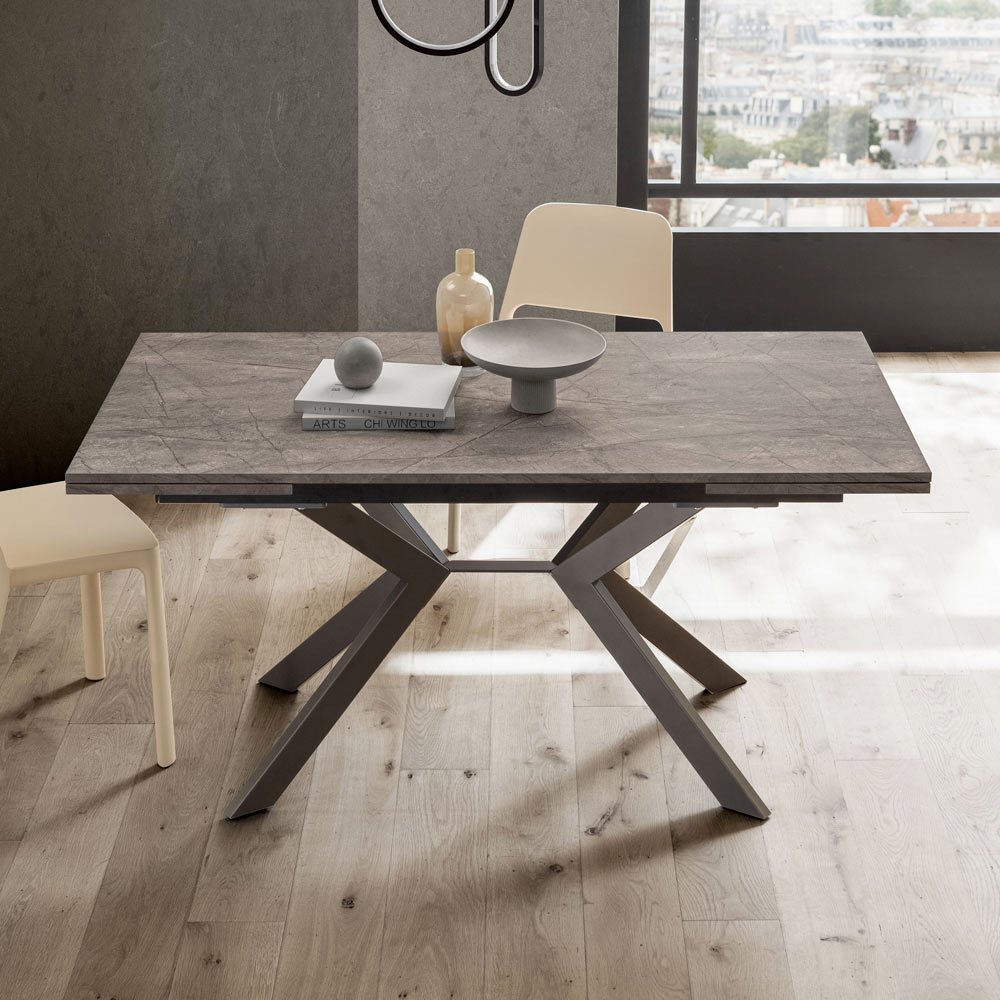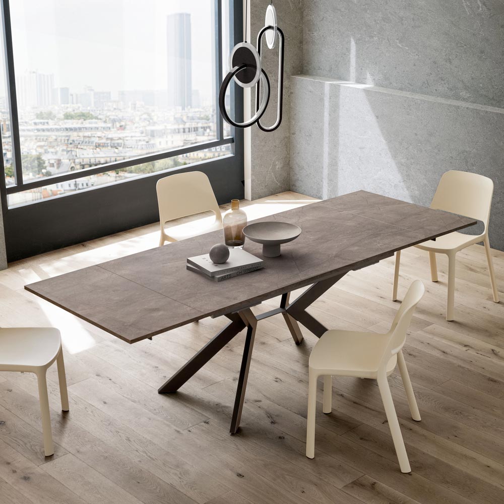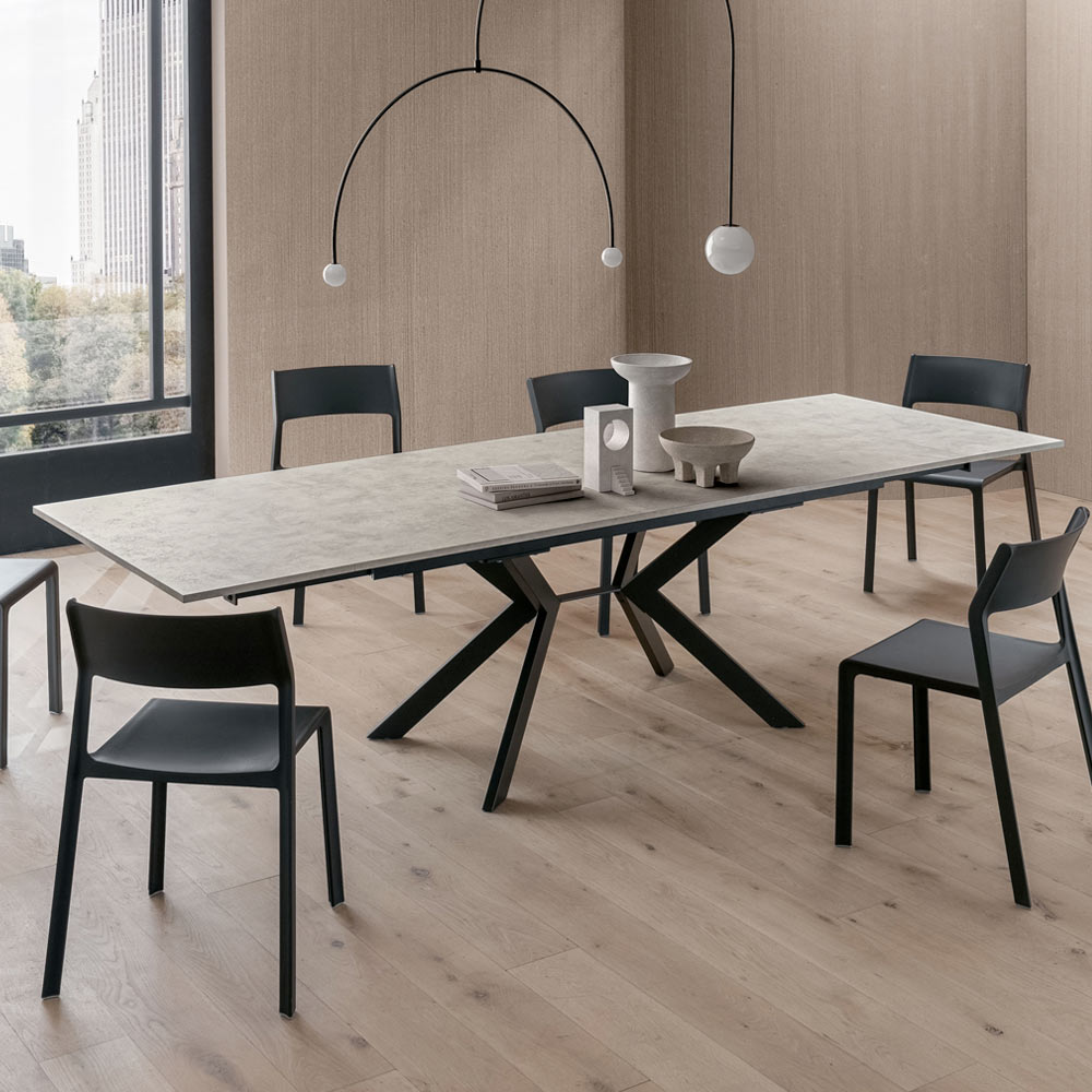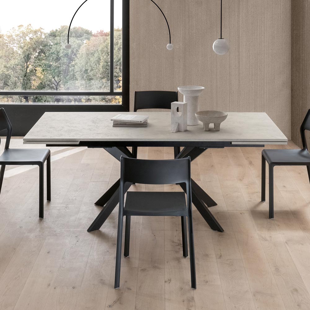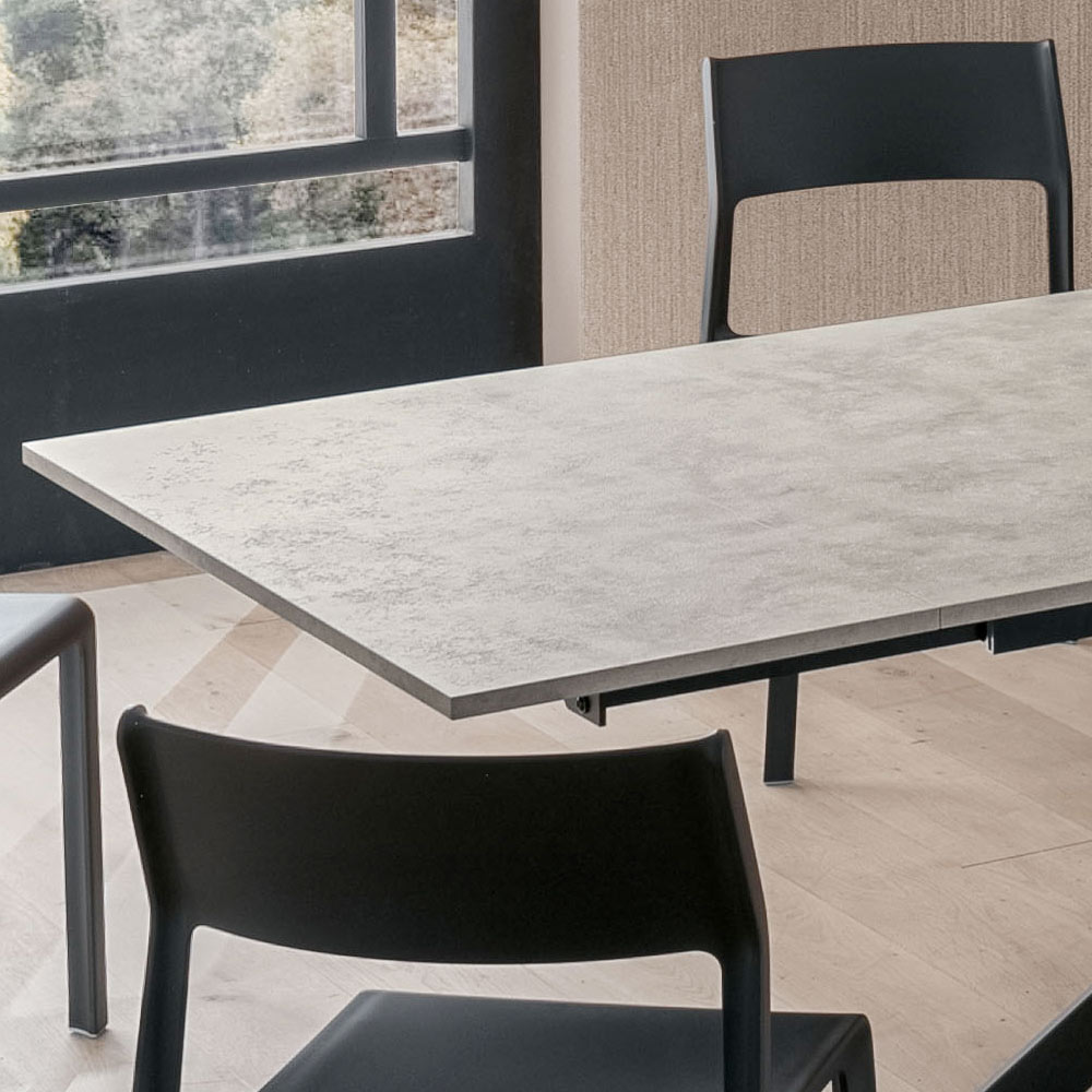 Elegance og praktisk anvendelighed forenes i dette udtræksbord i HPL og metal , designet til dem, der ønsker et møbel med en stærk visuel effekt, men yderst funktionelt.